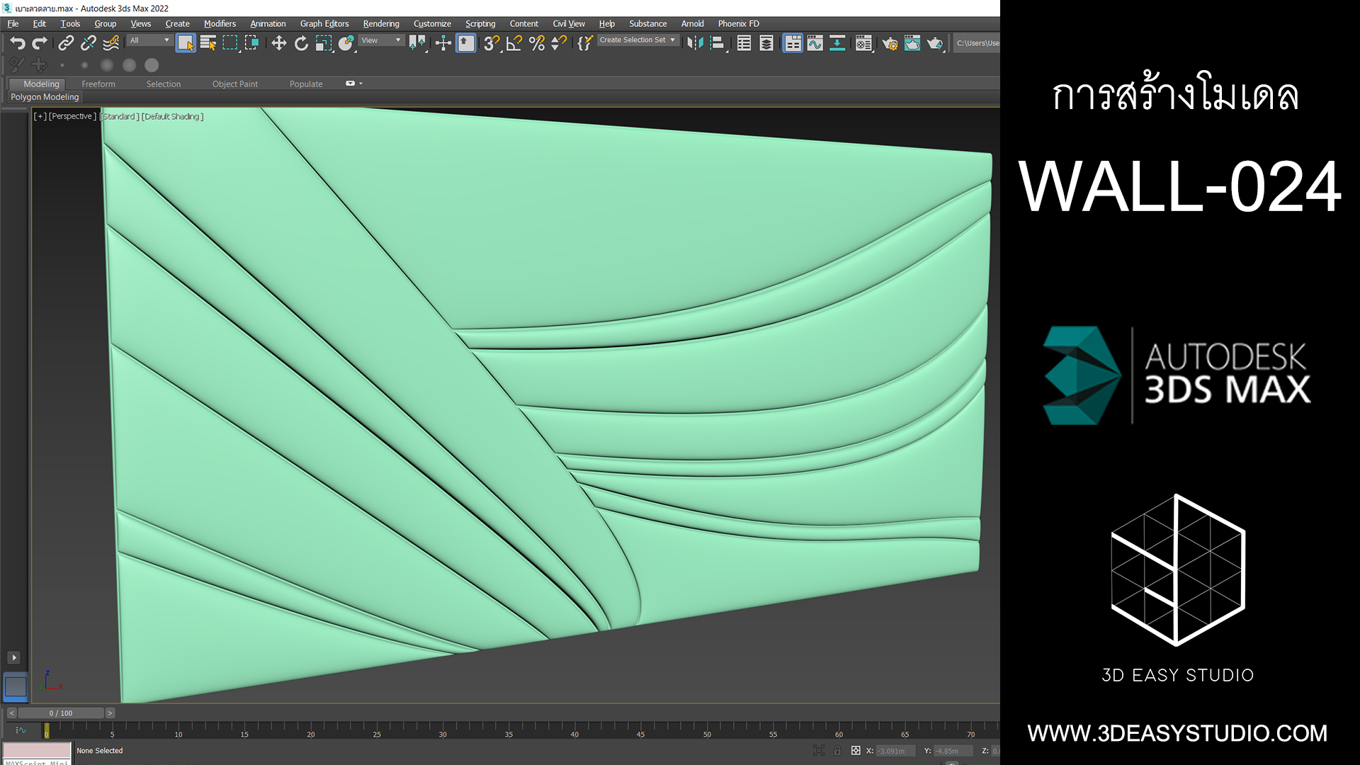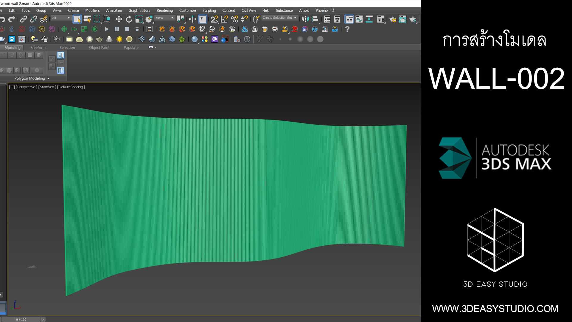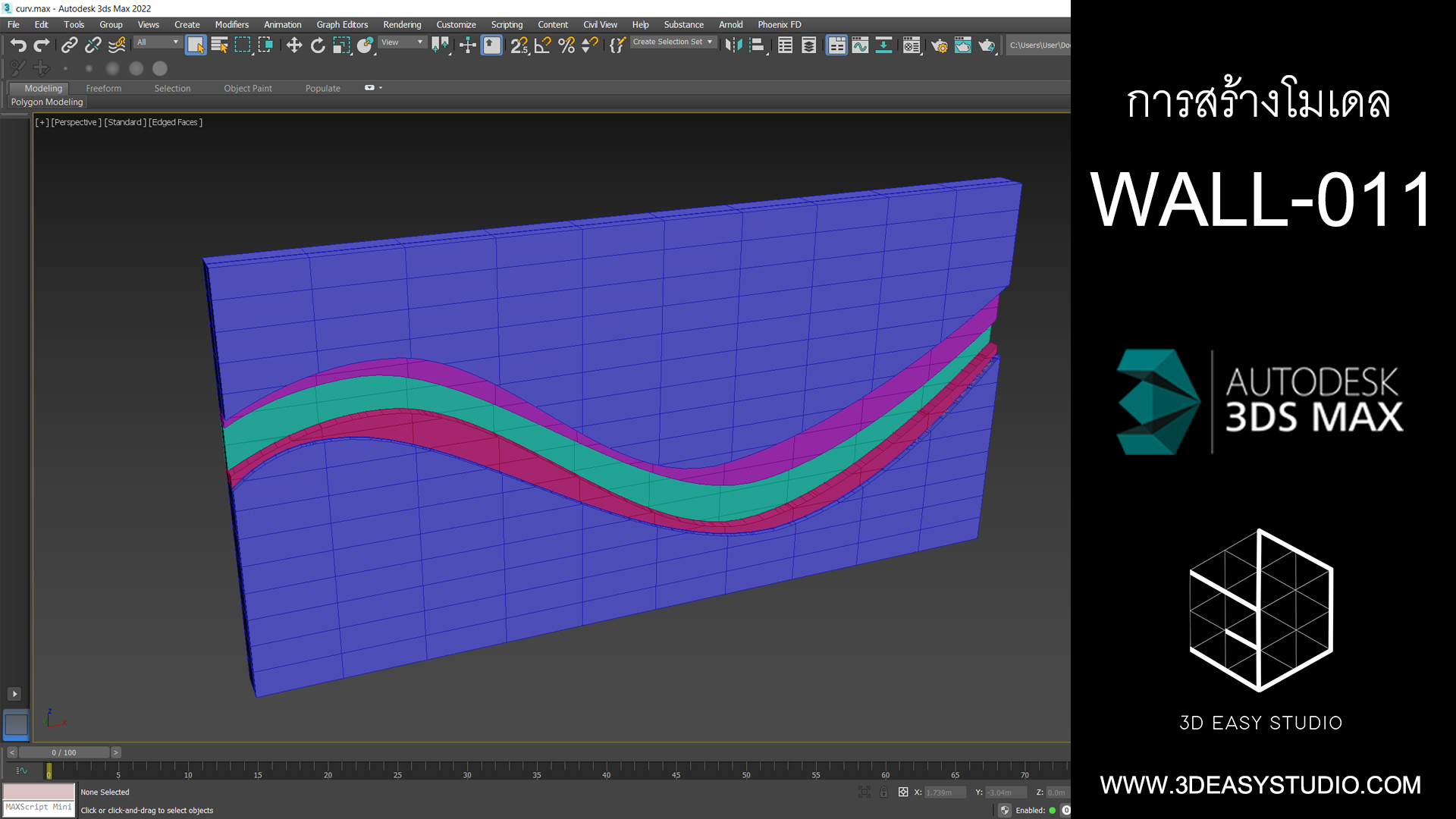 รูปแบบผนังเส้นโค้งมนสลับกันทำทีเดียวไม่ต้องสร้างแยกแต่ละชิ้น ปรับแต่งขนาดกว้างยาวลึกได้ตามต้องการเสร็จแล้วสามารถใส่ Material สีสัน และ Texture ได้ตามต้องการ