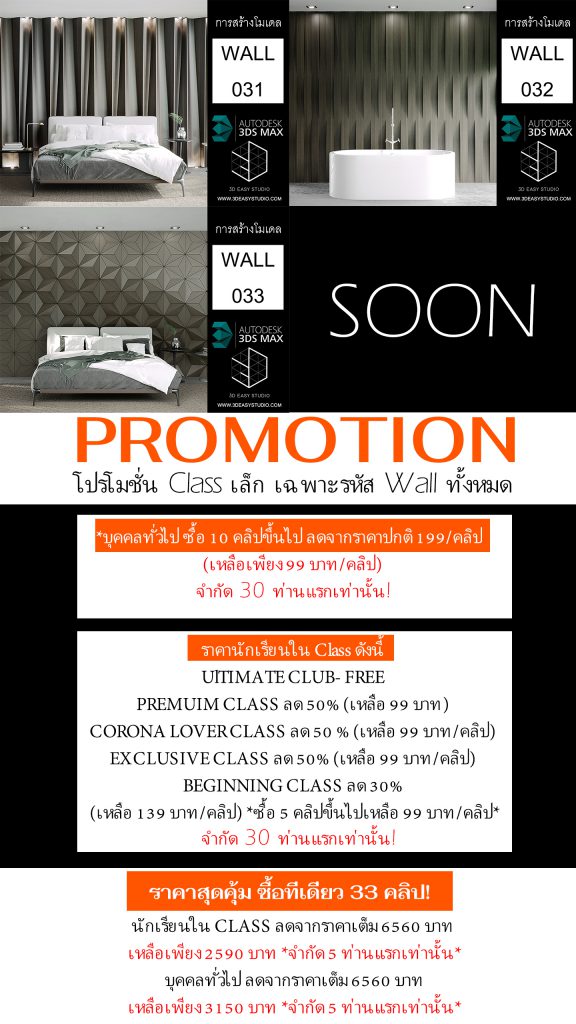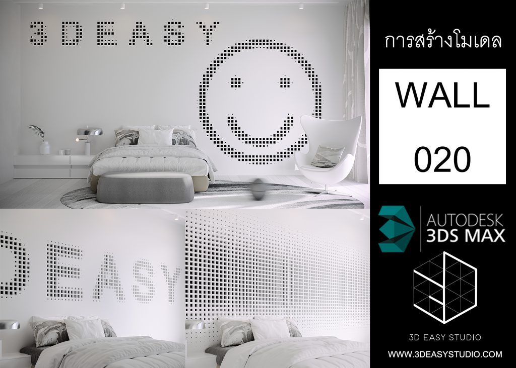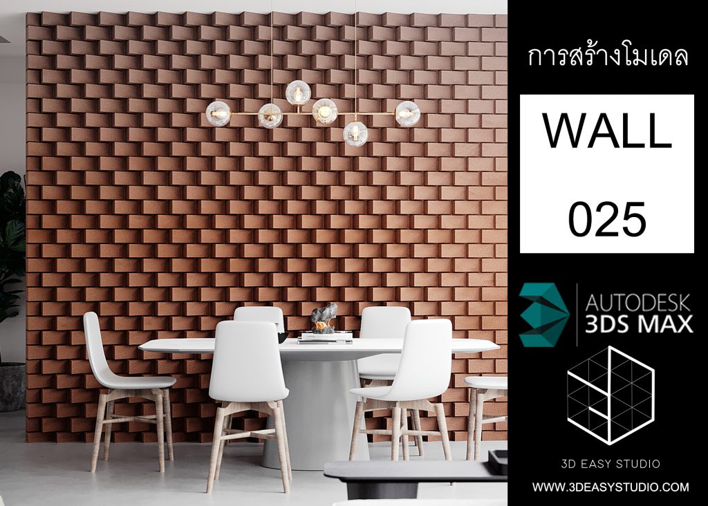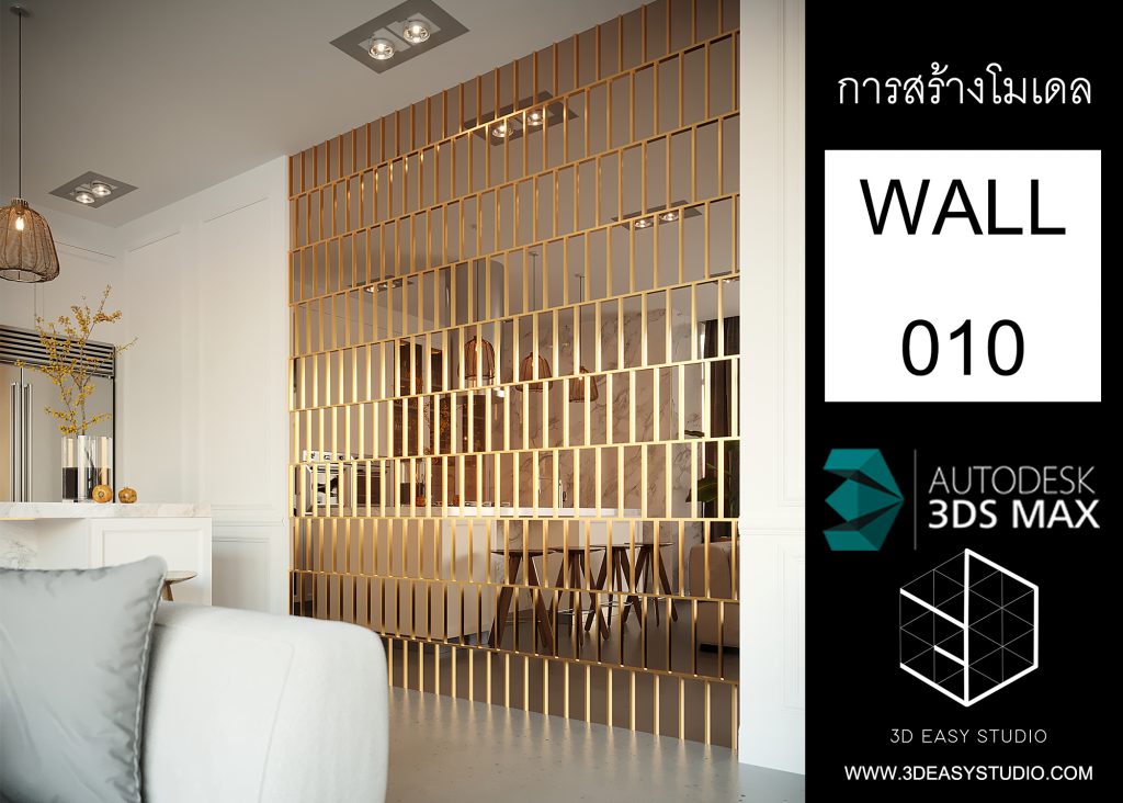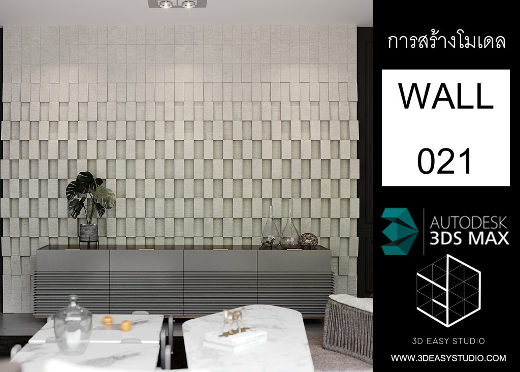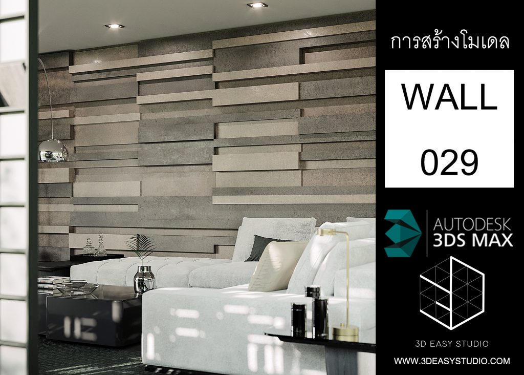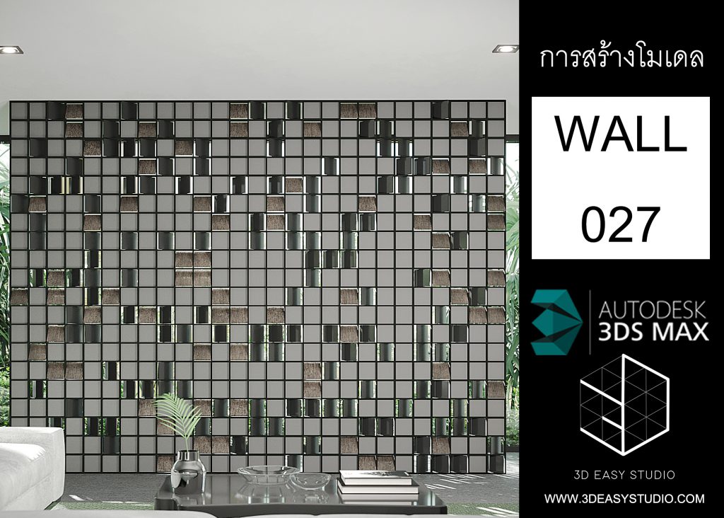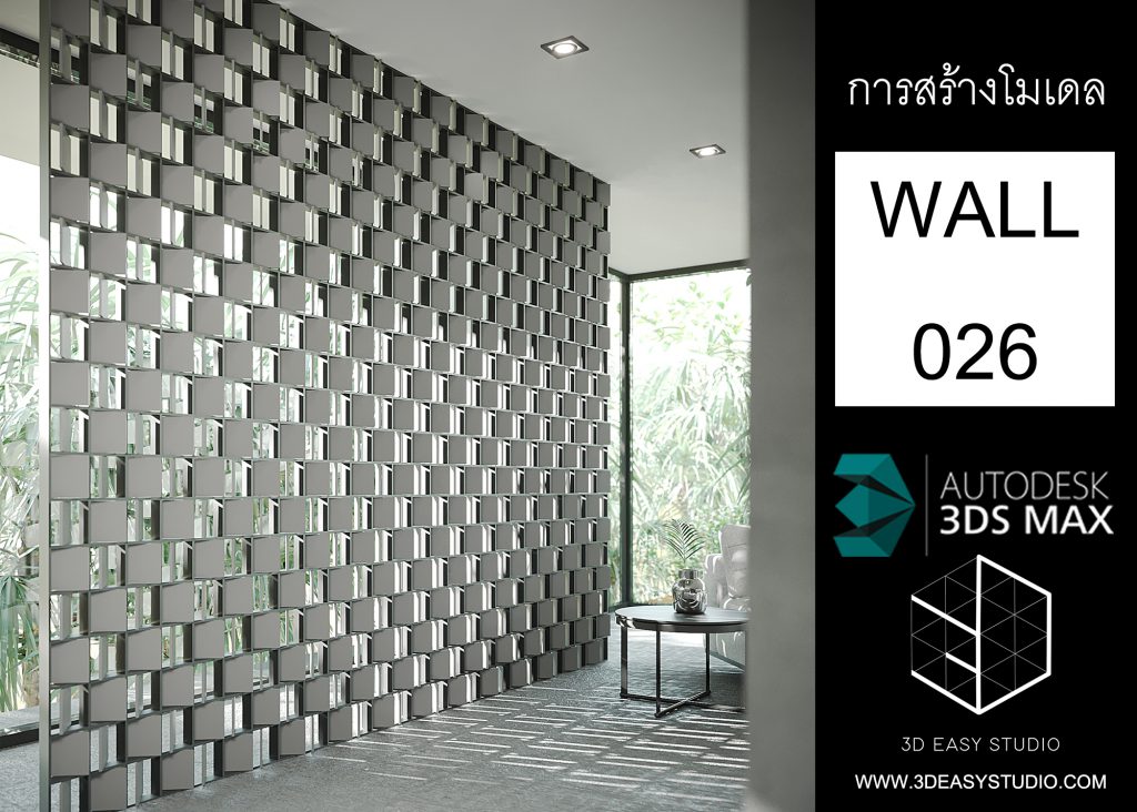 ผนังเว้นช่องสี่เหลี่ยม เล่นระดับขนาดความลึกตื้นได้ด้วยเทคนิคพิเศษ และสามารถปรับความกว้างยาวของผนังได้ตามต้องการ เสร็จแล้วสามารถใส่ Material สีสัน และ Texture ได้ตามต้องการ