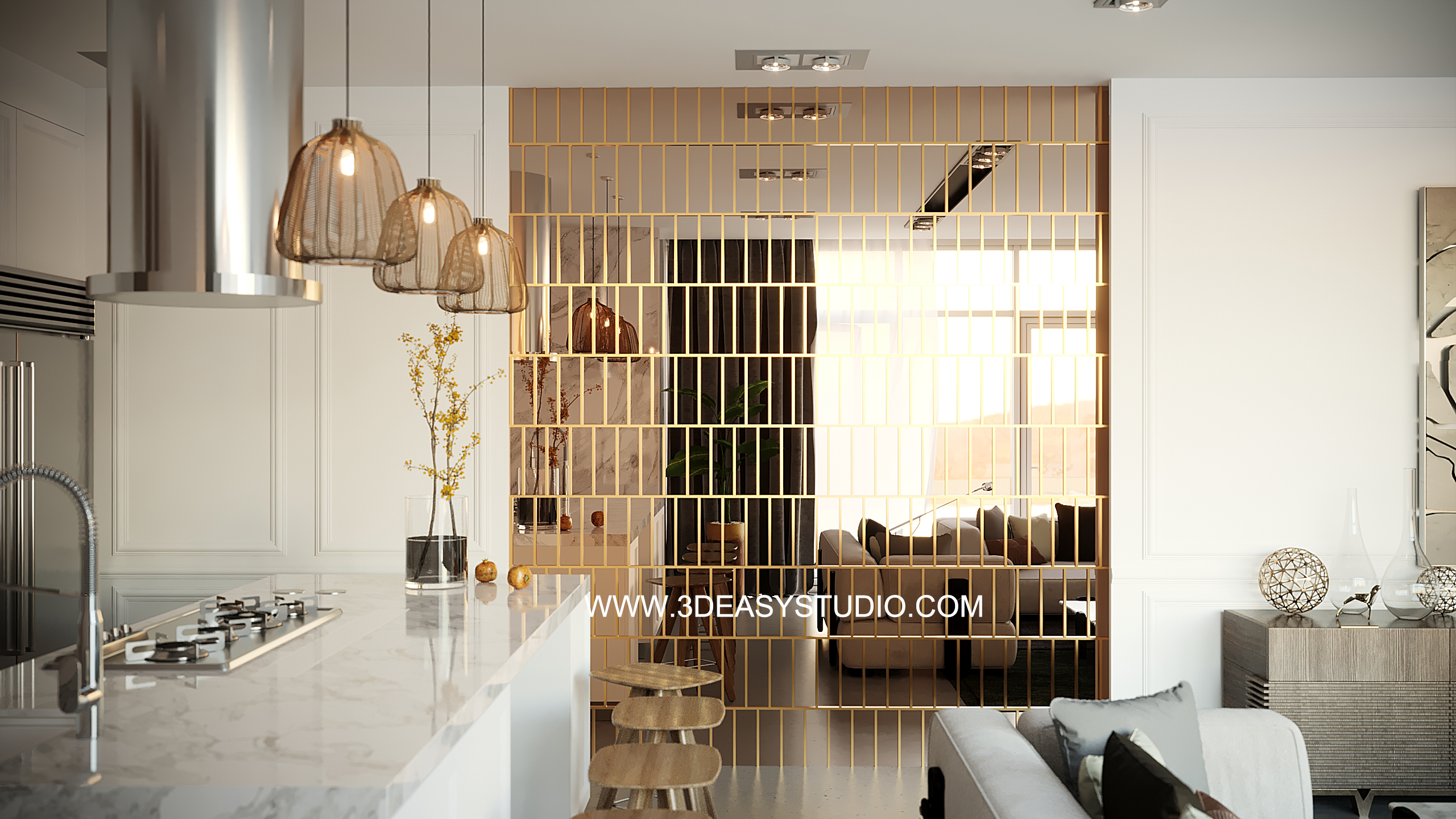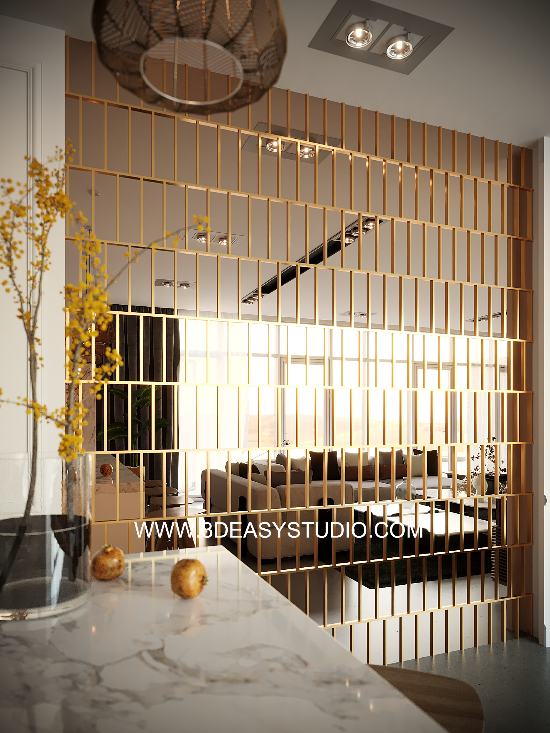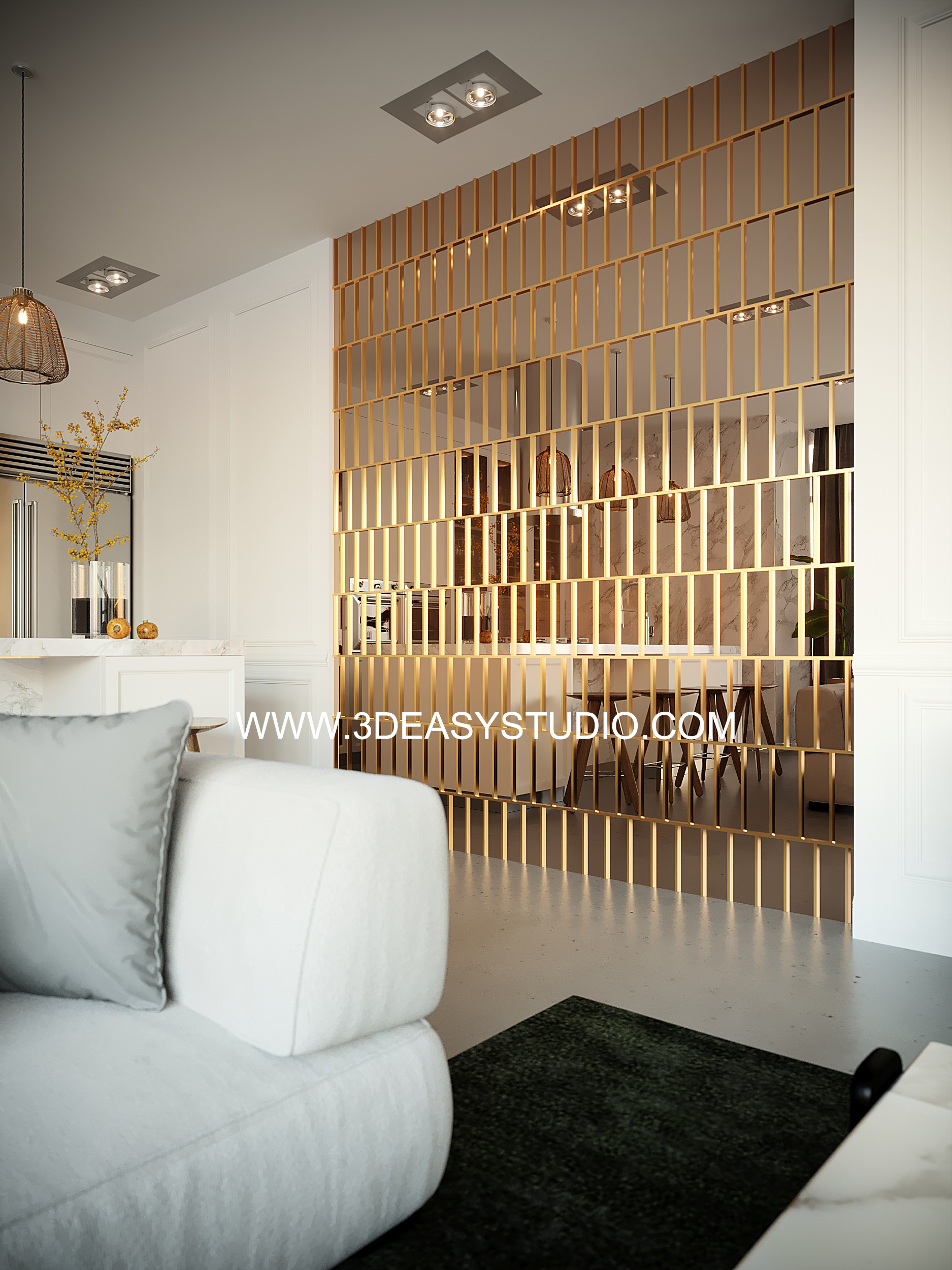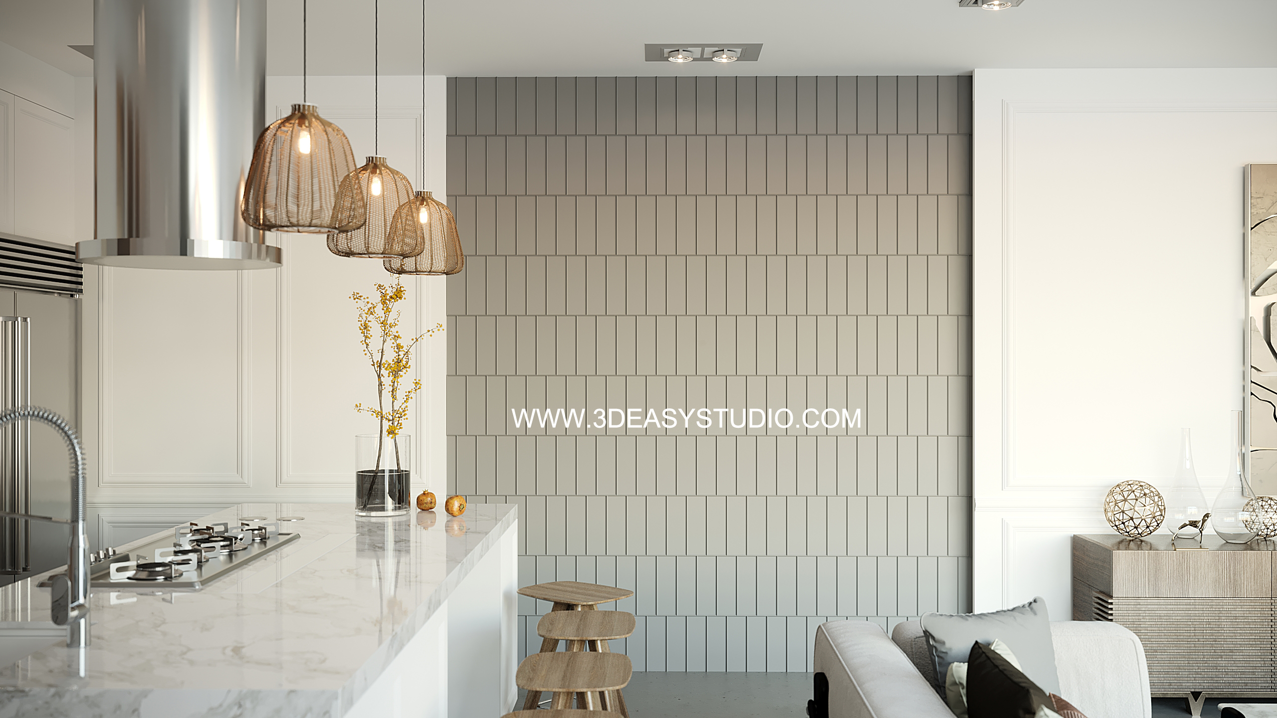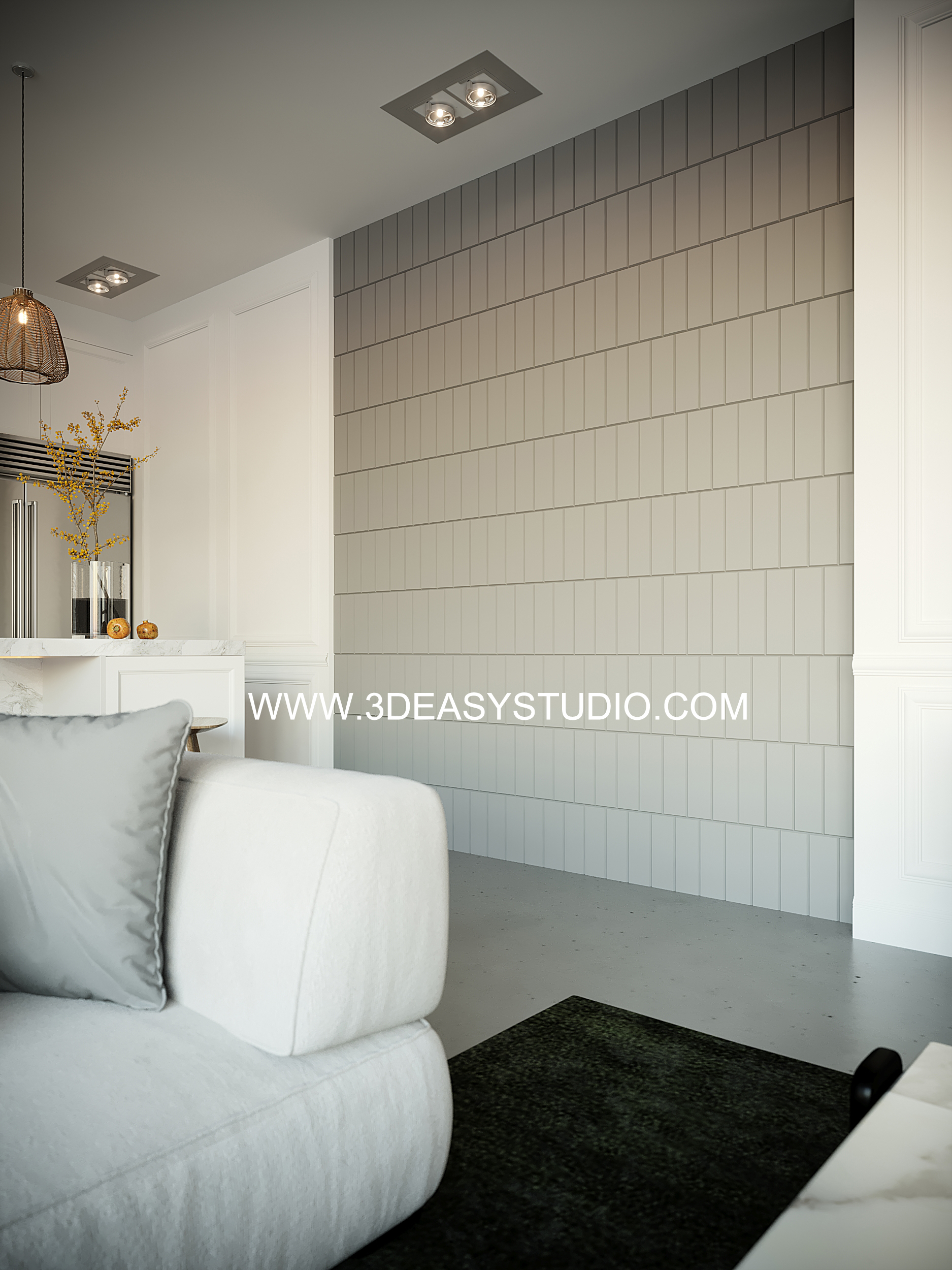 ผนังเว้นช่องสี่เหลี่ยม เล่นระดับขนาดความลึกตื้นได้ด้วยเทคนิคพิเศษ และสามารถปรับความกว้างยาวของผนังได้ตามต้องการ เสร็จแล้วสามารถใส่ Material สีสัน และ Texture ได้ตามต้องการ
