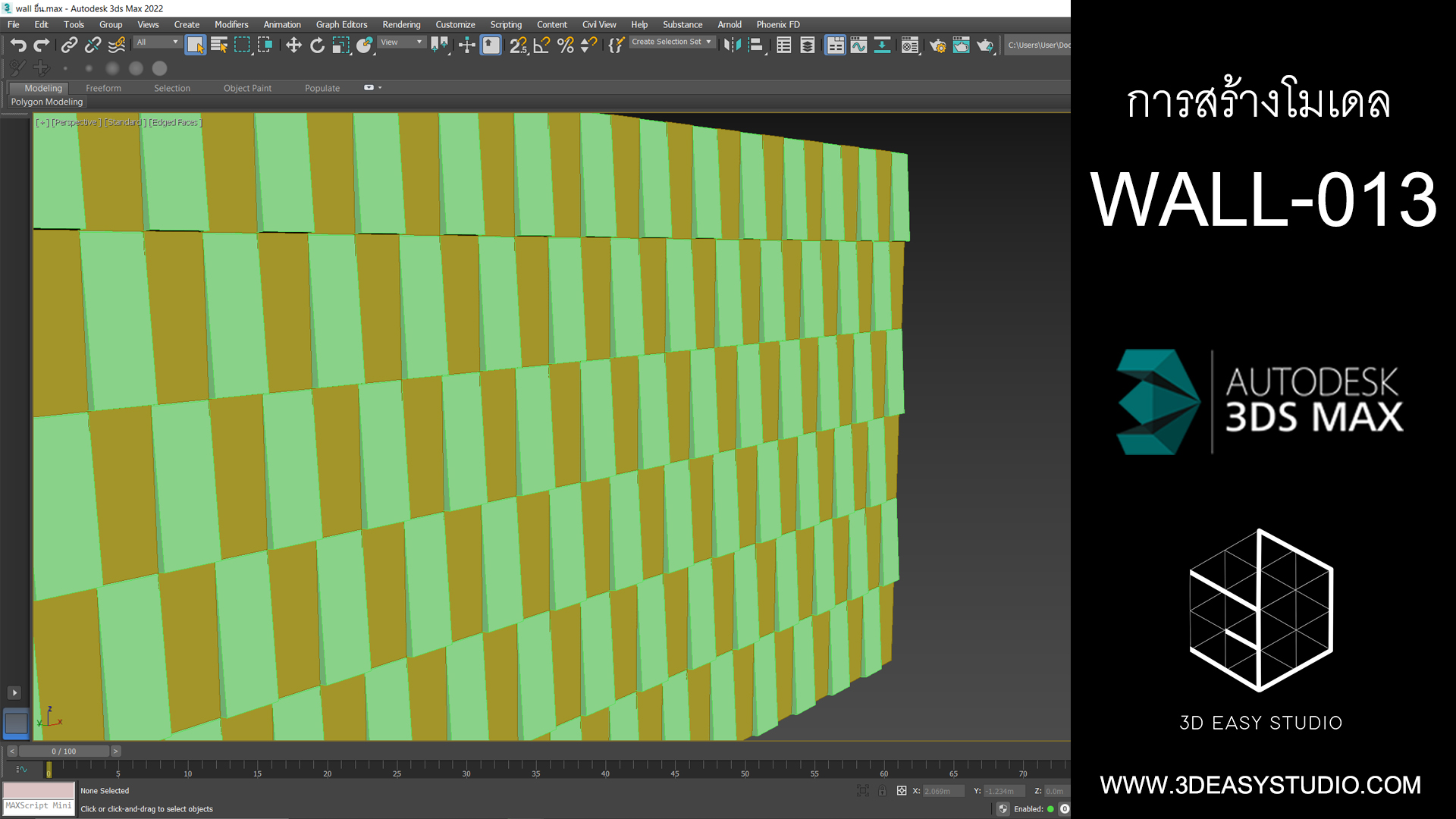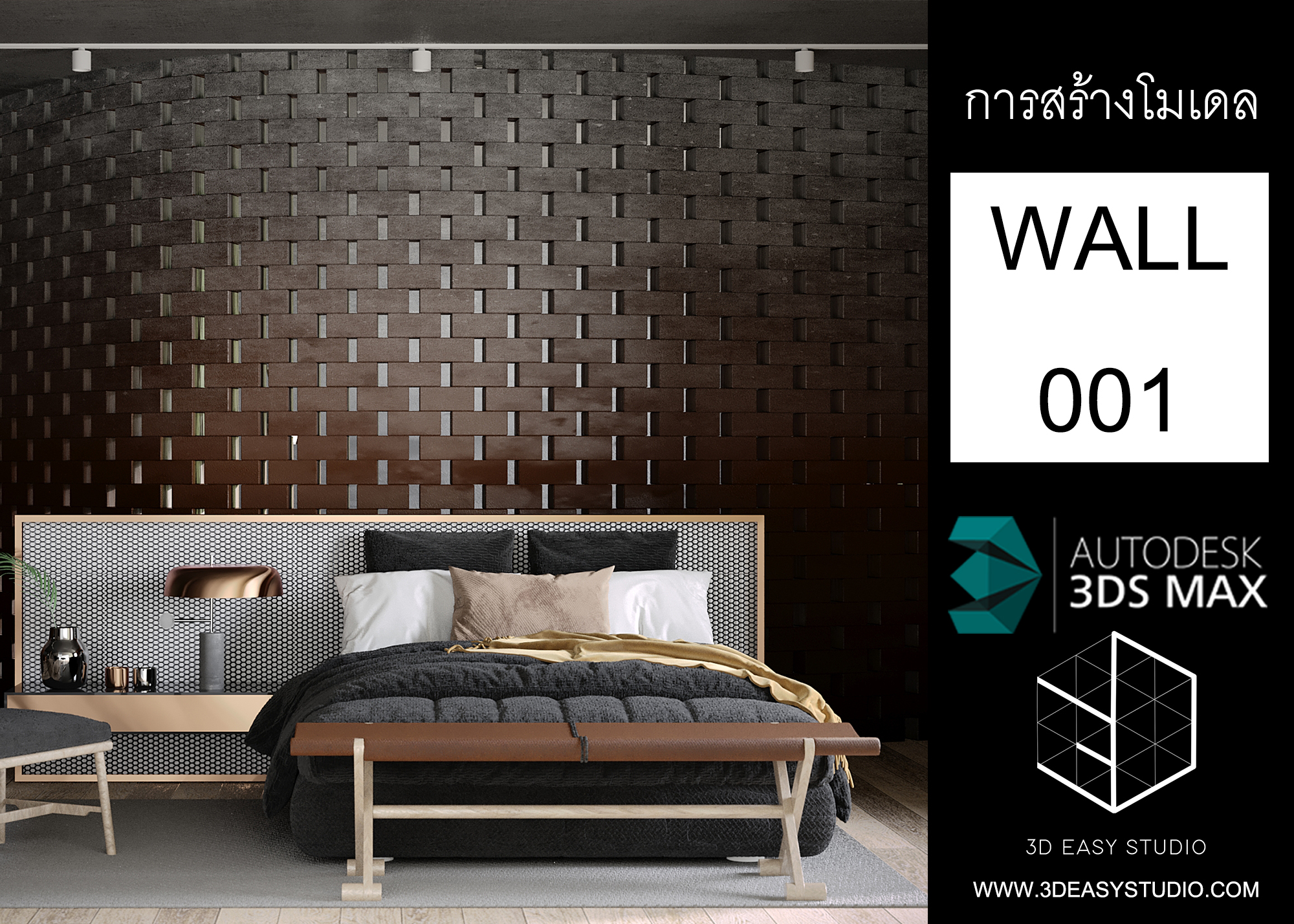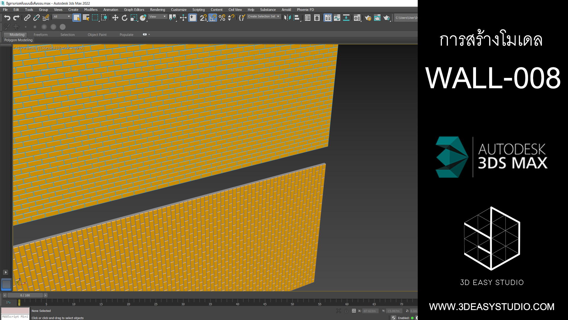 ผนังอิฐเหลี่ยม ปรับการเล่นระดับบิดหมุนซ้ายขวาได้ด้วยเทคนิคพิเศษสามารถปรับขนาดกว้างยาวของผนังและก้อนอิฐได้ตามต้องการ เสร็จแล้วสามารถใส่ Material สีสัน และ Texture ได้ตามต้องการ