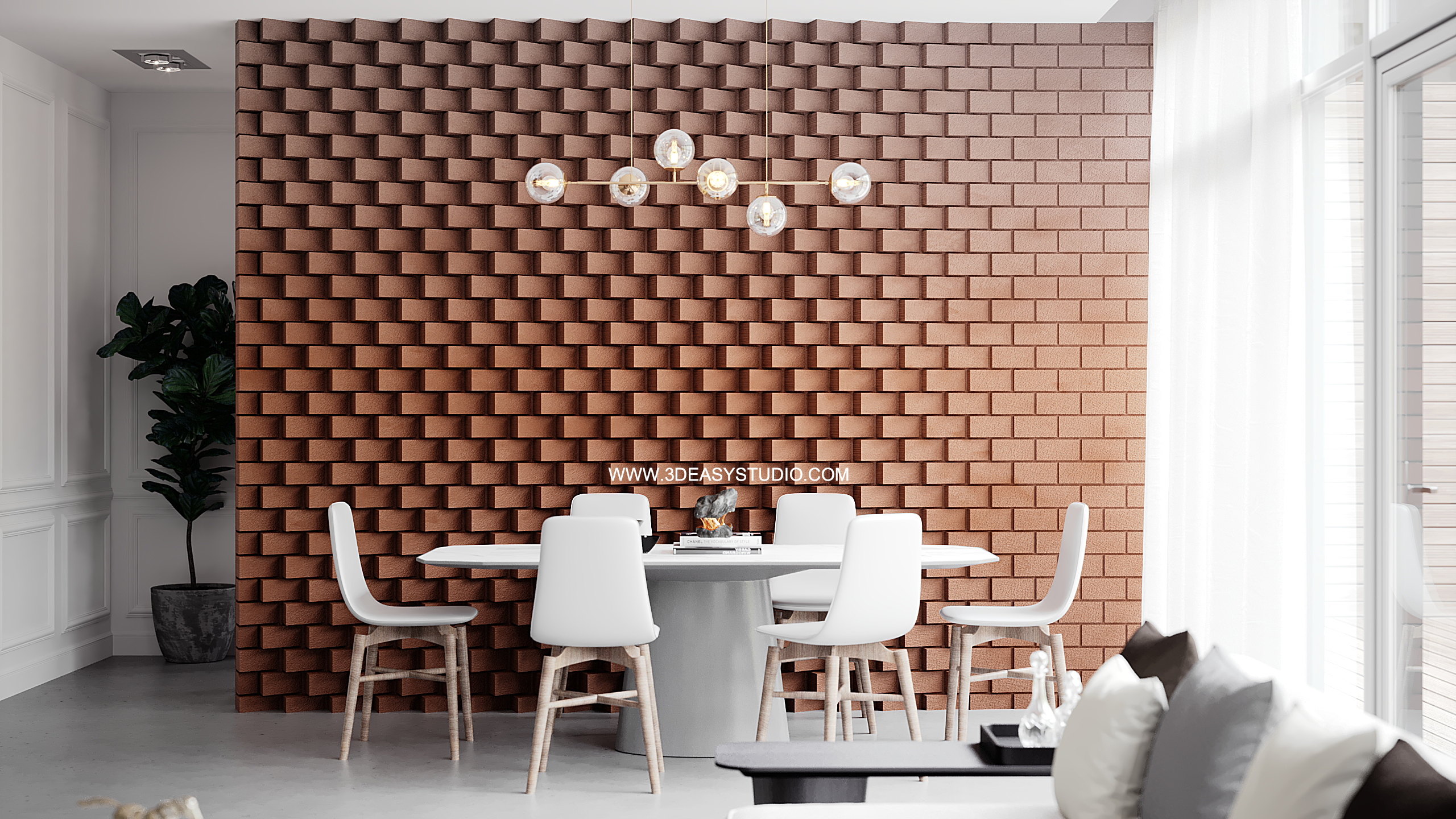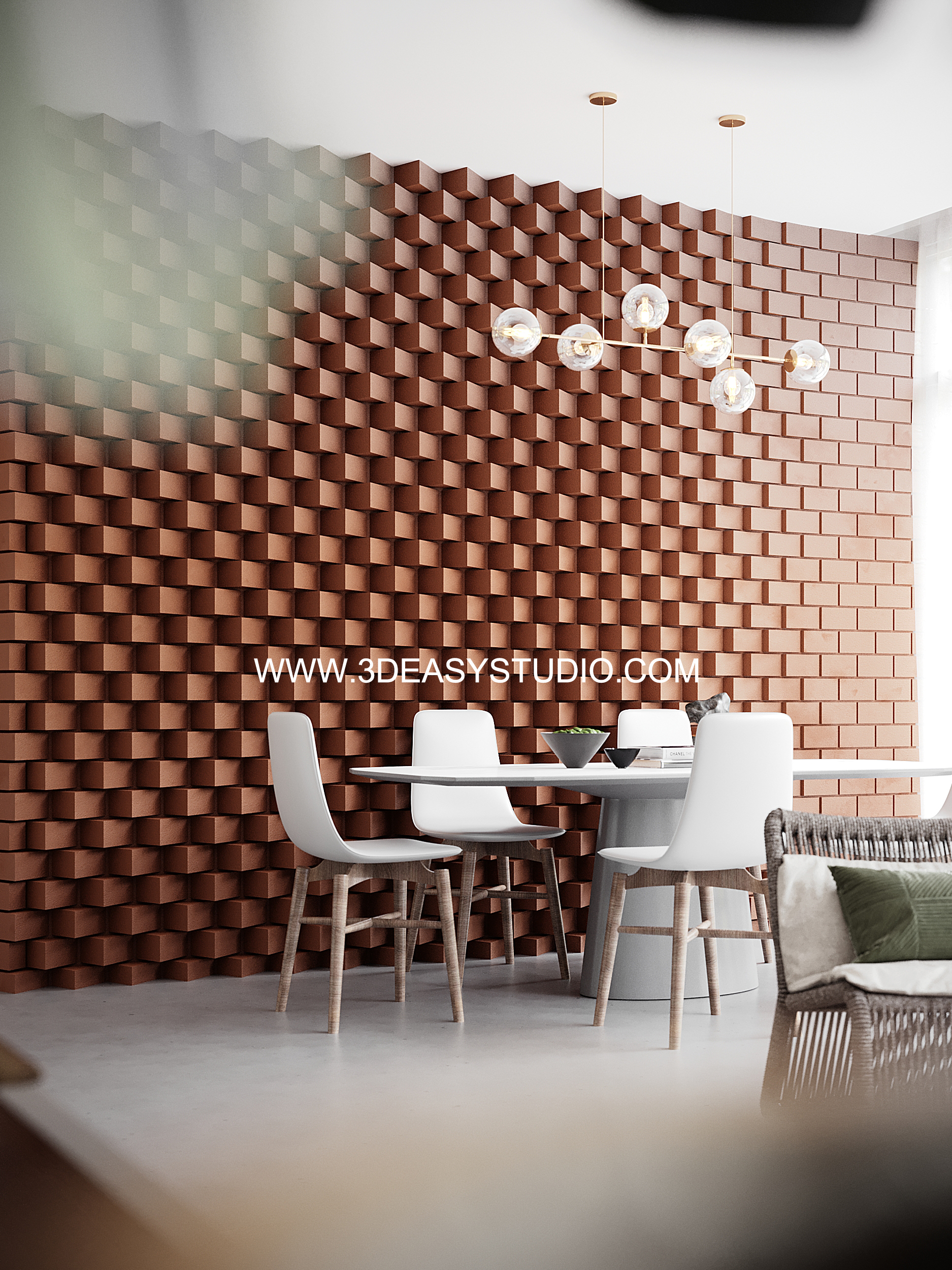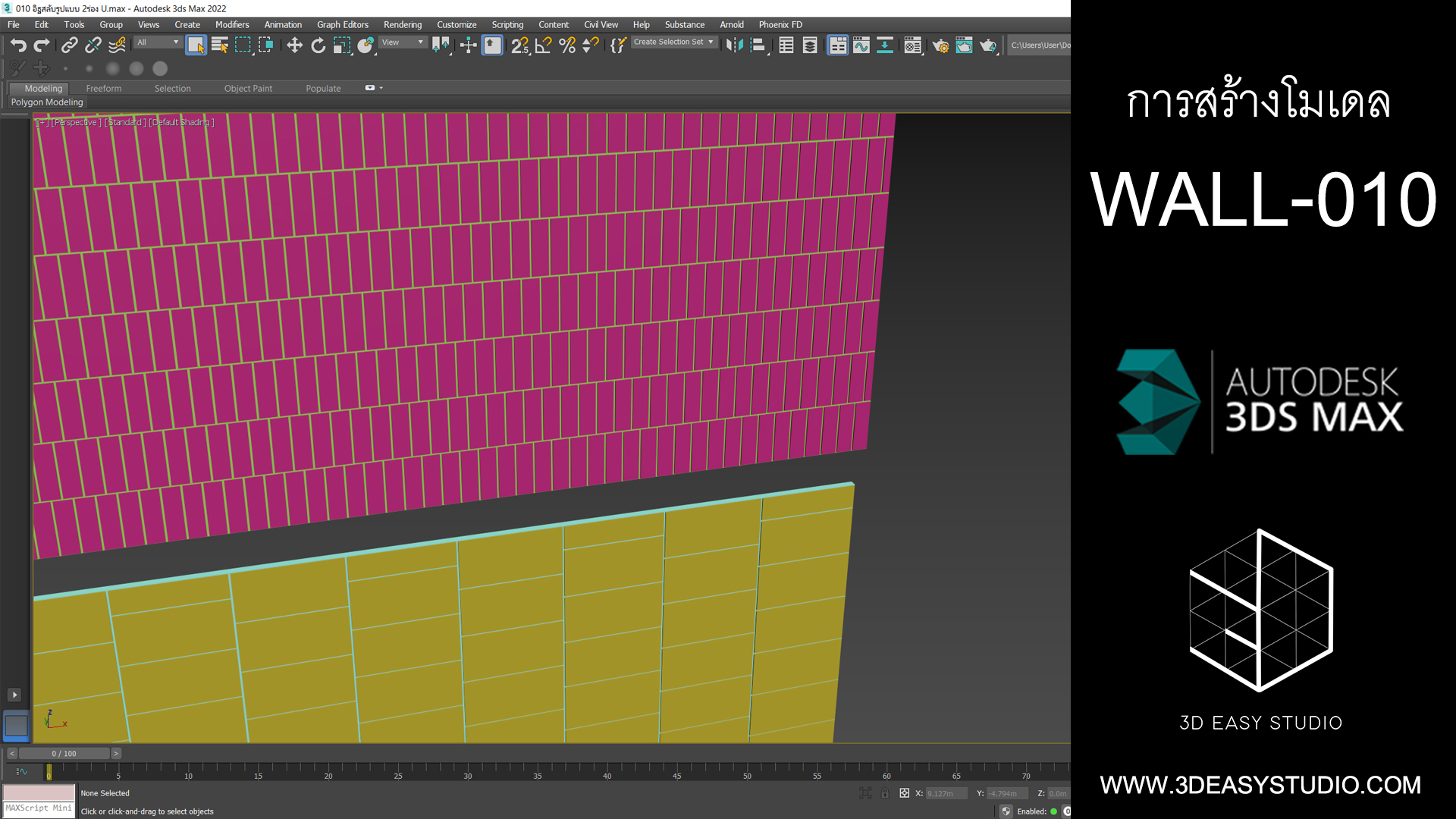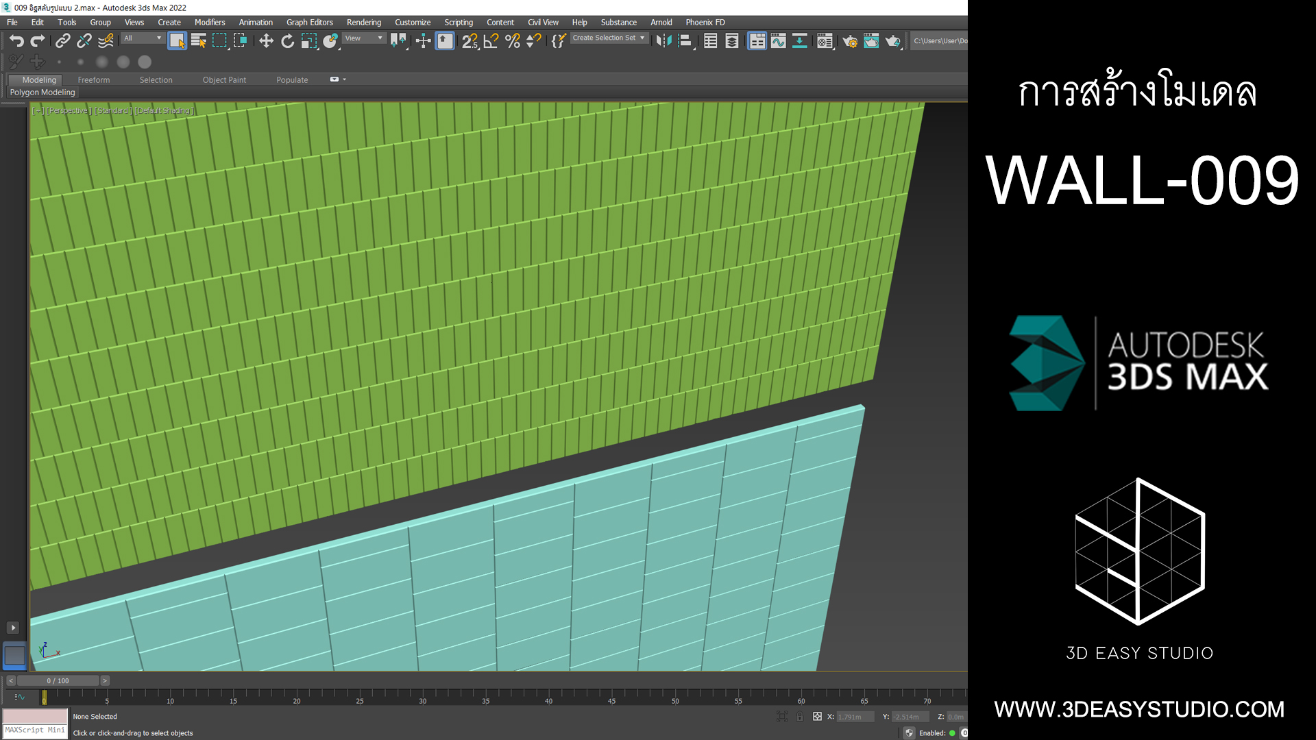 ผนังอิฐเหลี่ยม ปรับการเล่นระดับบิดหมุนซ้ายขวาได้ด้วยเทคนิคพิเศษสามารถปรับขนาดกว้างยาวของผนังและก้อนอิฐได้ตามต้องการ เสร็จแล้วสามารถใส่ Material สีสัน และ Texture ได้ตามต้องการ