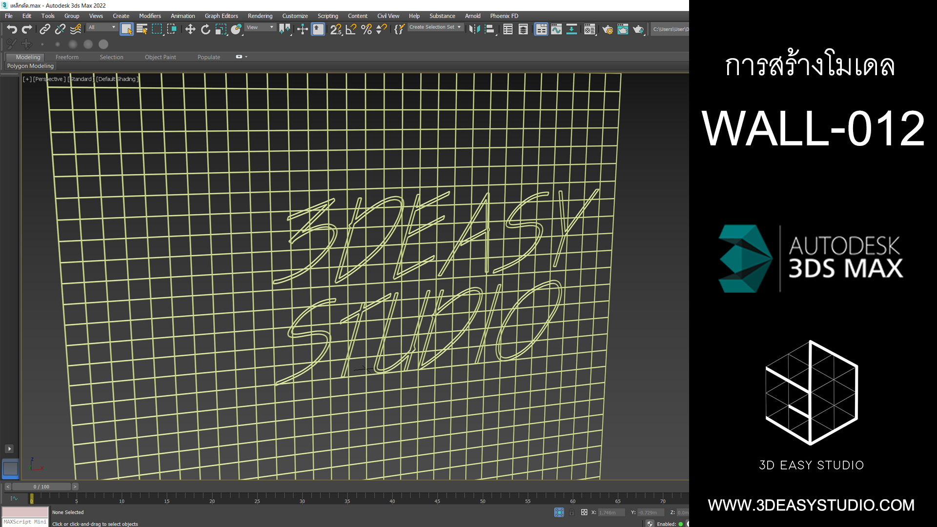 ผนังเหล็กดัดลวดลายพตัวอักษร สามารถปรับความกว้างยาว และรูปแบบตัวอีกษรได้ตามต้องการ เสร็จแล้วสามารถใส่ Material สีสัน และ Texture ได้ตามต้องการ
