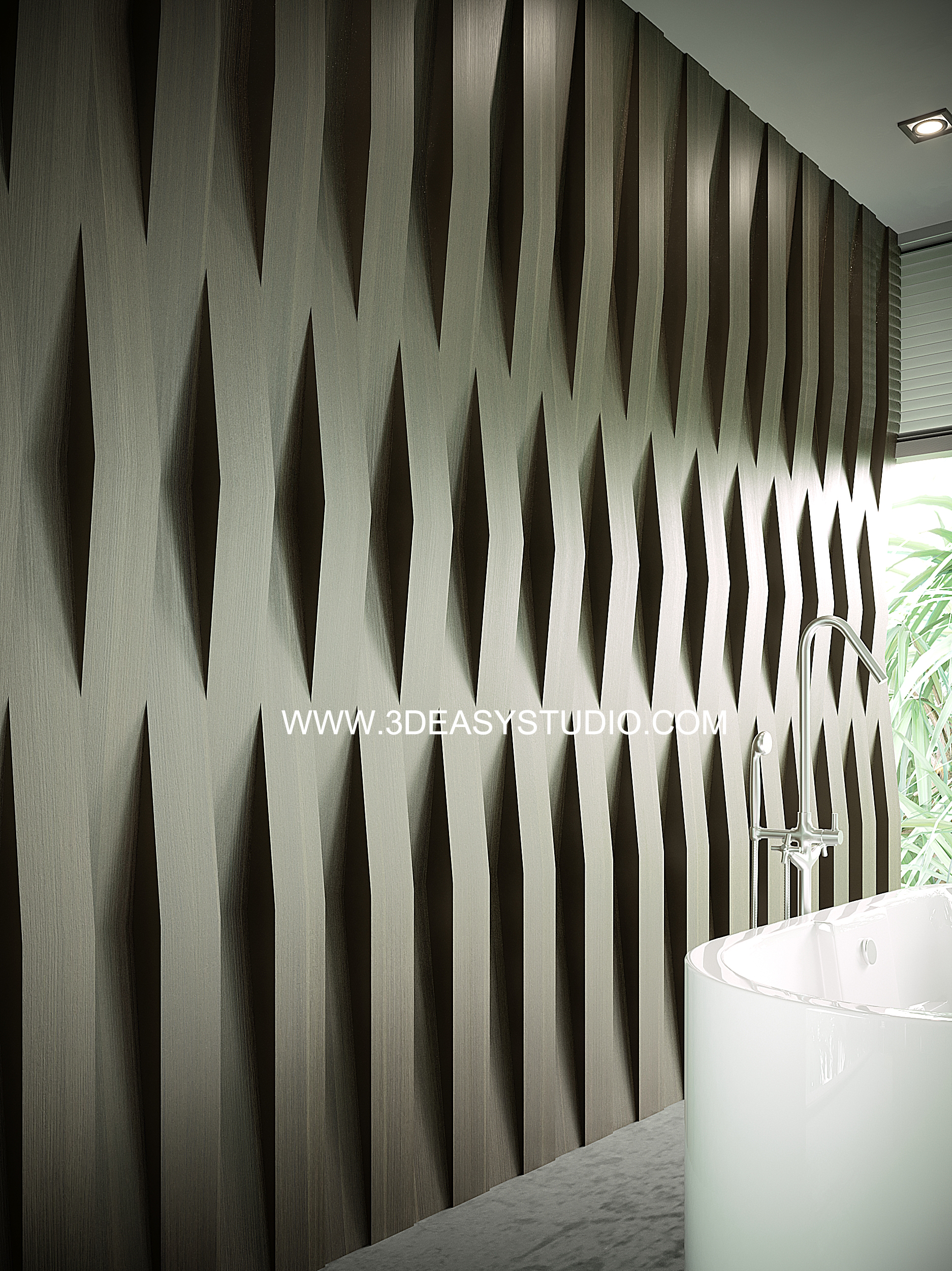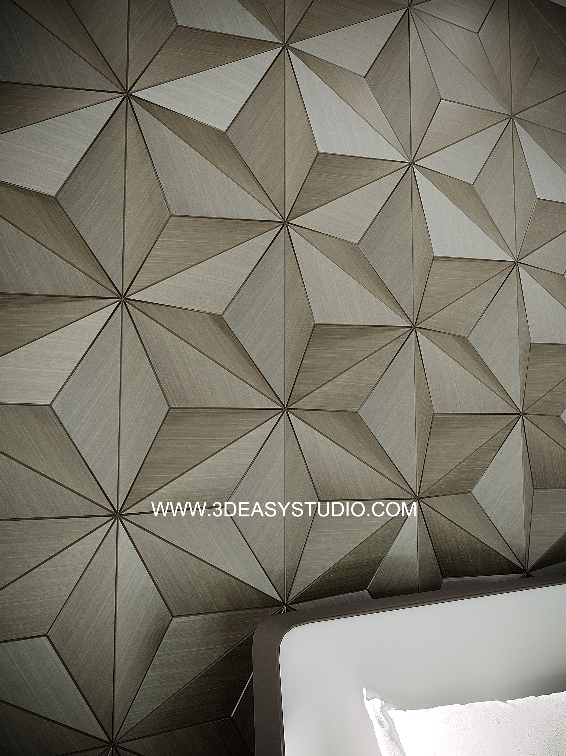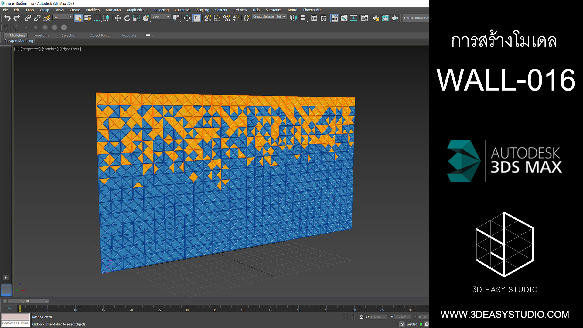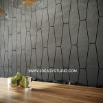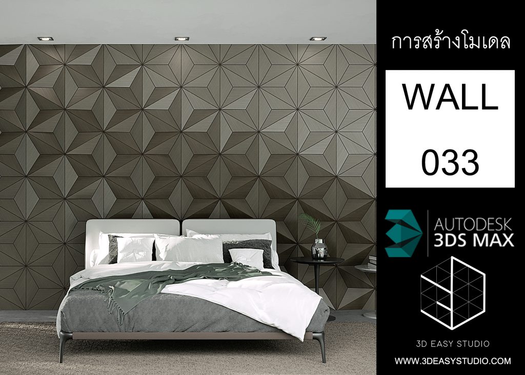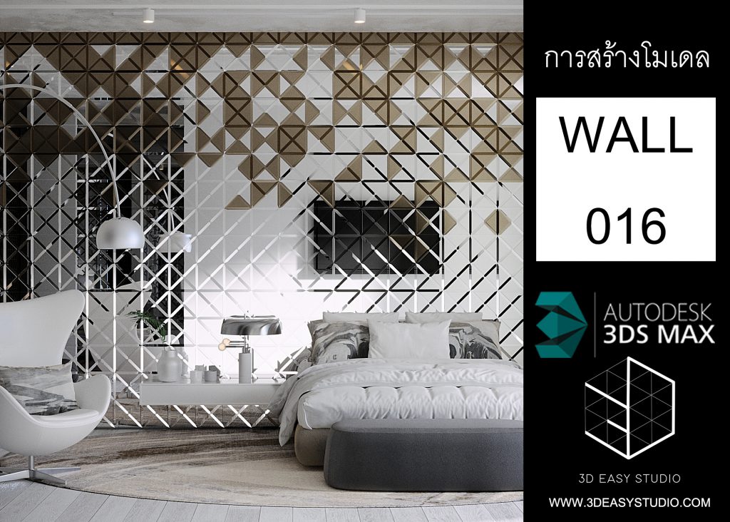 ผนังลวดลายสามเหลี่ยมเว้นร่องคละสเกล เล่นระดับยุบและยื่นได้ สามารถปรับความกว้างยาวได้ตามต้องการ เสร็จแล้วสามารถใส่ Material สีสัน และ Texture ได้ตามต้องการ