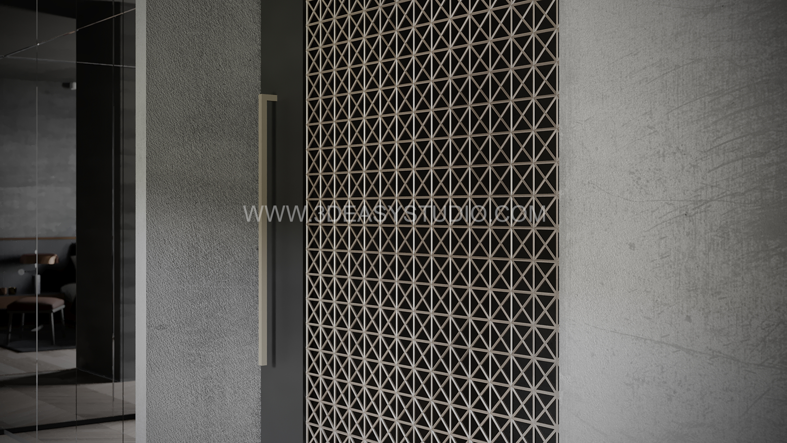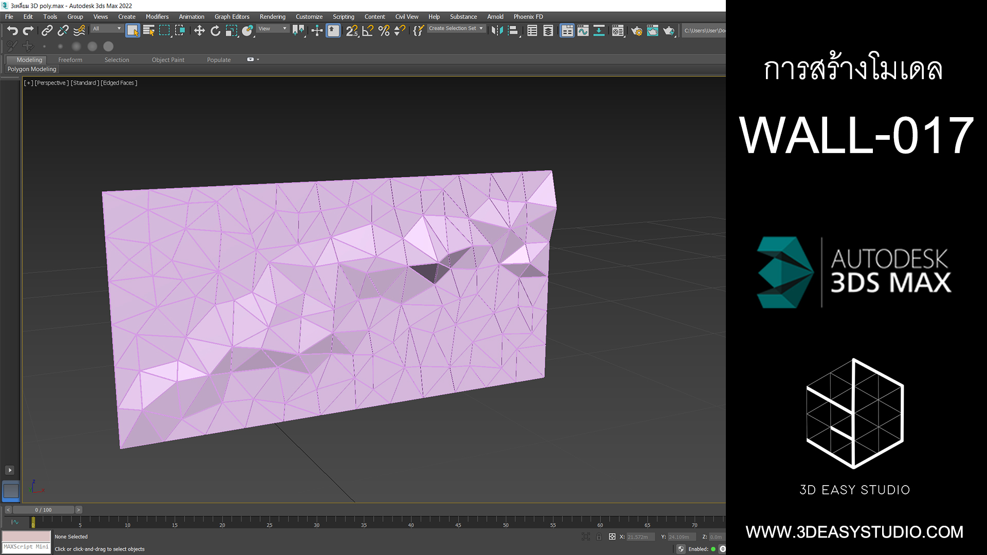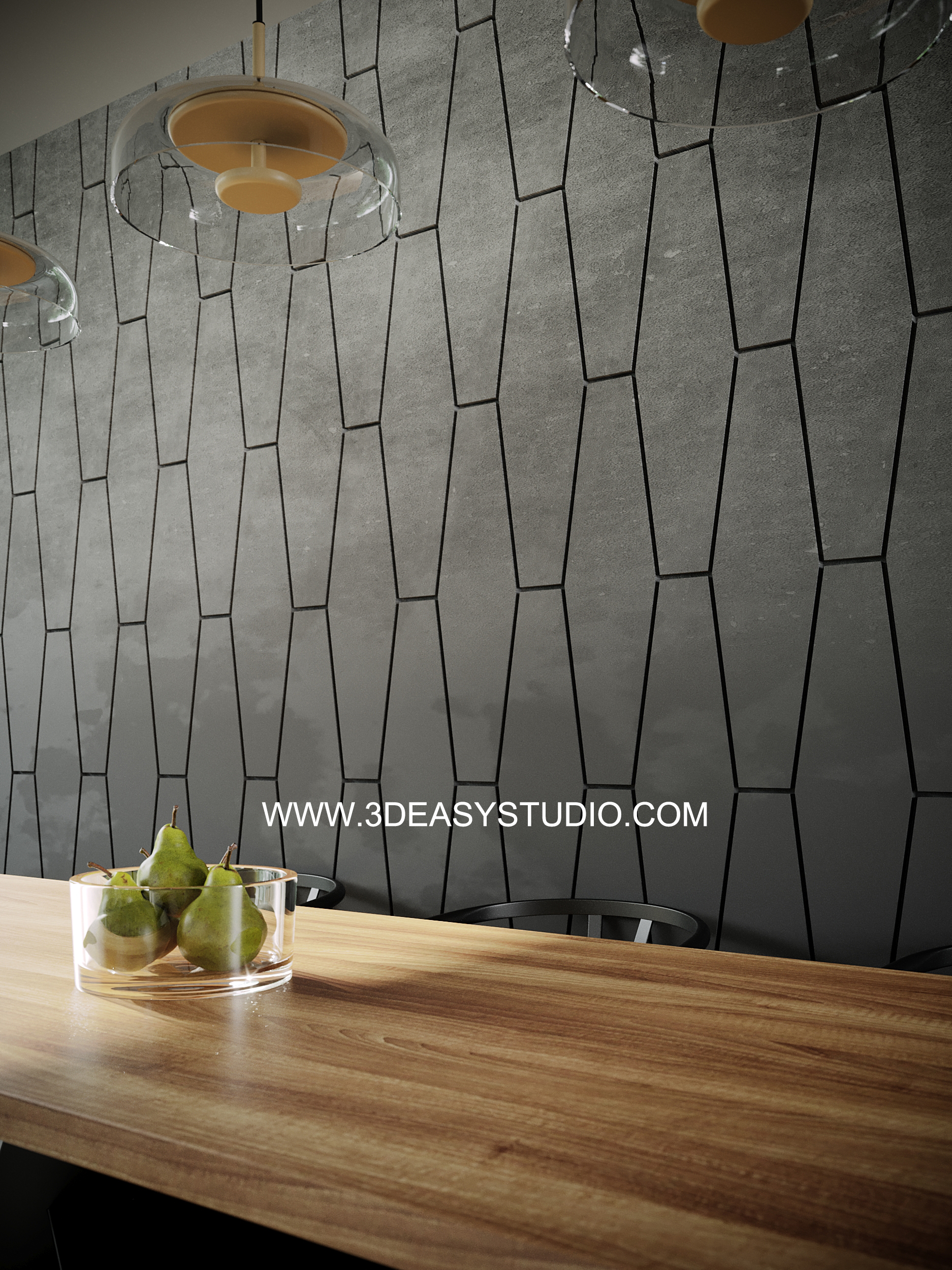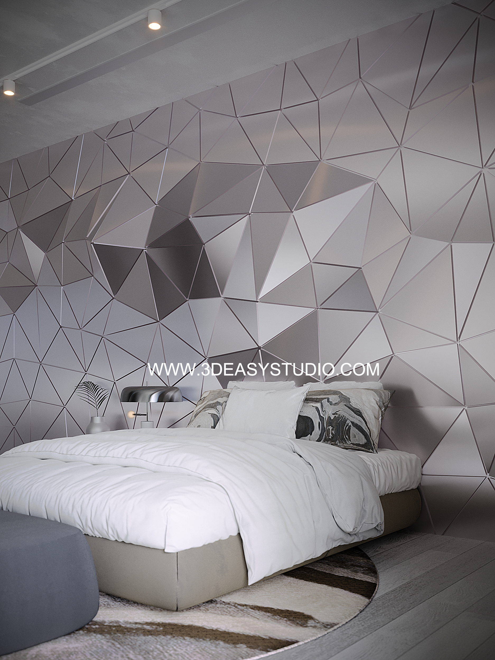 ผนังลวดลายสามเหลี่ยมเว้นร่องคละสเกล เล่นระดับยุบและยื่นได้ สามารถปรับความกว้างยาวได้ตามต้องการ เสร็จแล้วสามารถใส่ Material สีสัน และ Texture ได้ตามต้องการ
