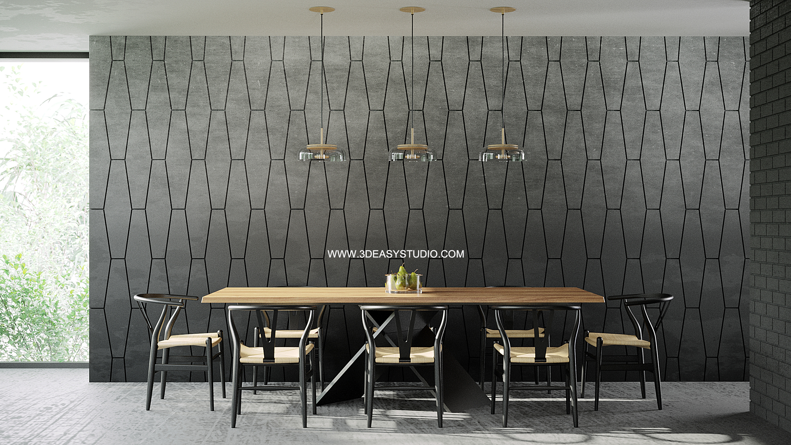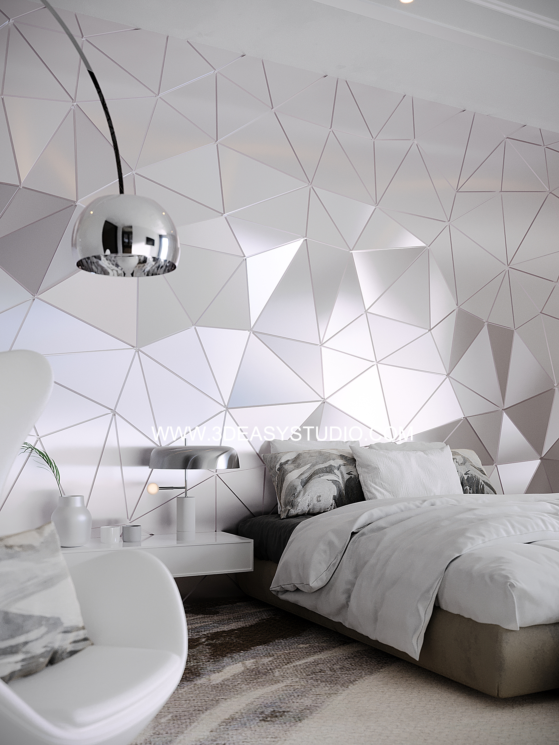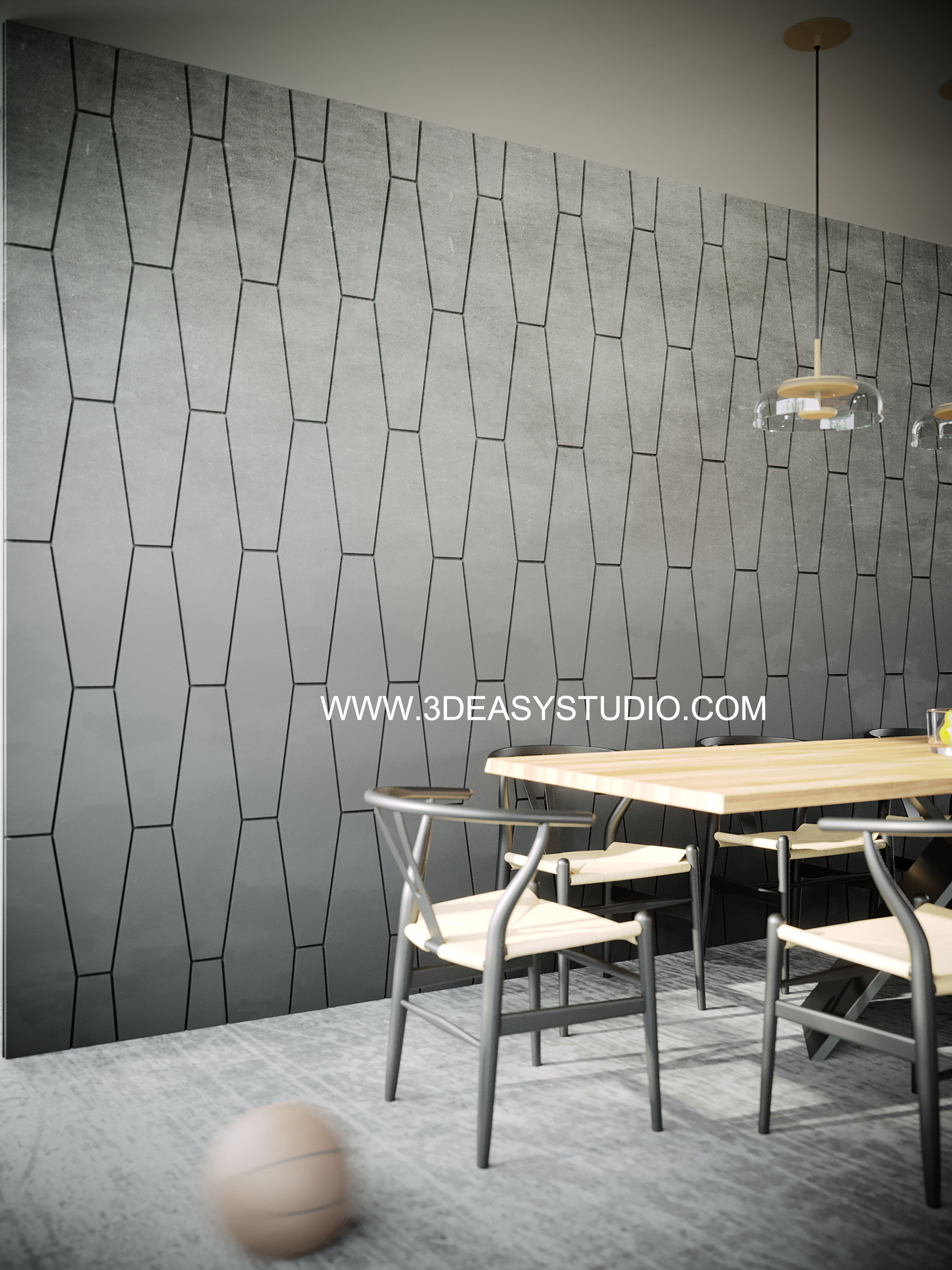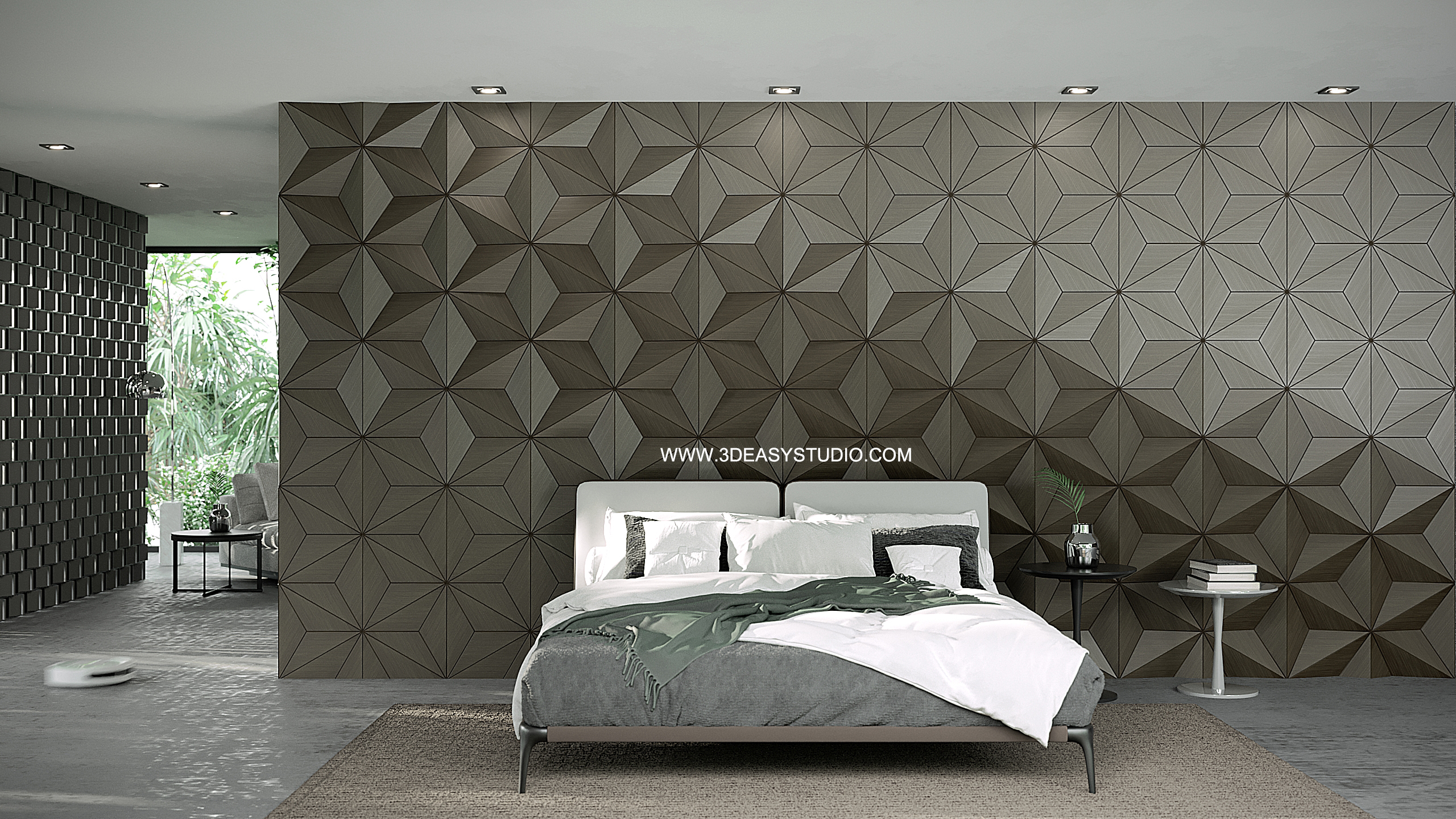 ผนังลวดลายสามเหลี่ยมเว้นร่องคละสเกล เล่นระดับยุบและยื่นได้ สามารถปรับความกว้างยาวได้ตามต้องการ เสร็จแล้วสามารถใส่ Material สีสัน และ Texture ได้ตามต้องการ