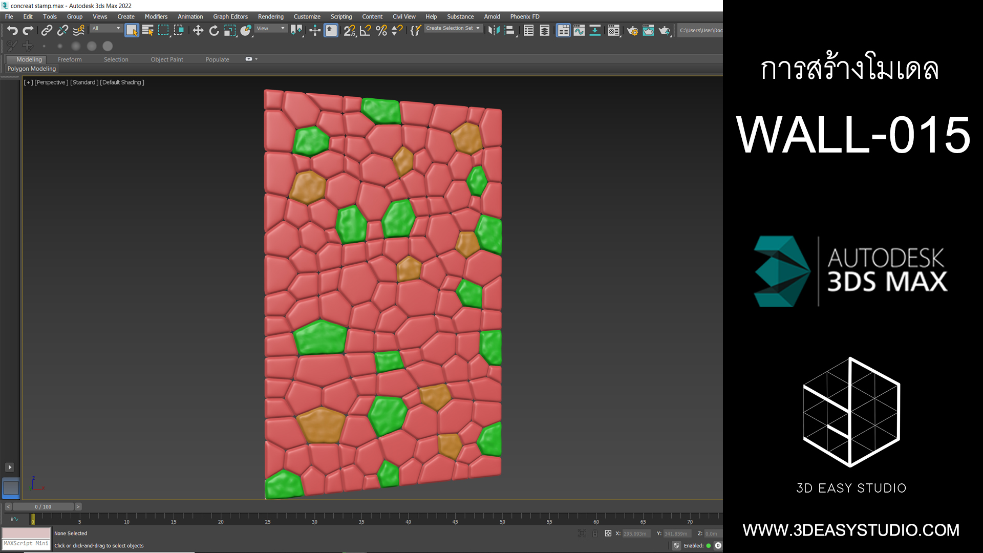 ผนังลวดลายหินพื้นผิวขรุขระ สามารถปรับความกว้างยาว และเลือกคละสีกันได้ตามต้องการ เสร็จแล้วสามารถใส่แยกใส่ Material สีสัน และ Texture ได้ตามต้องการ
