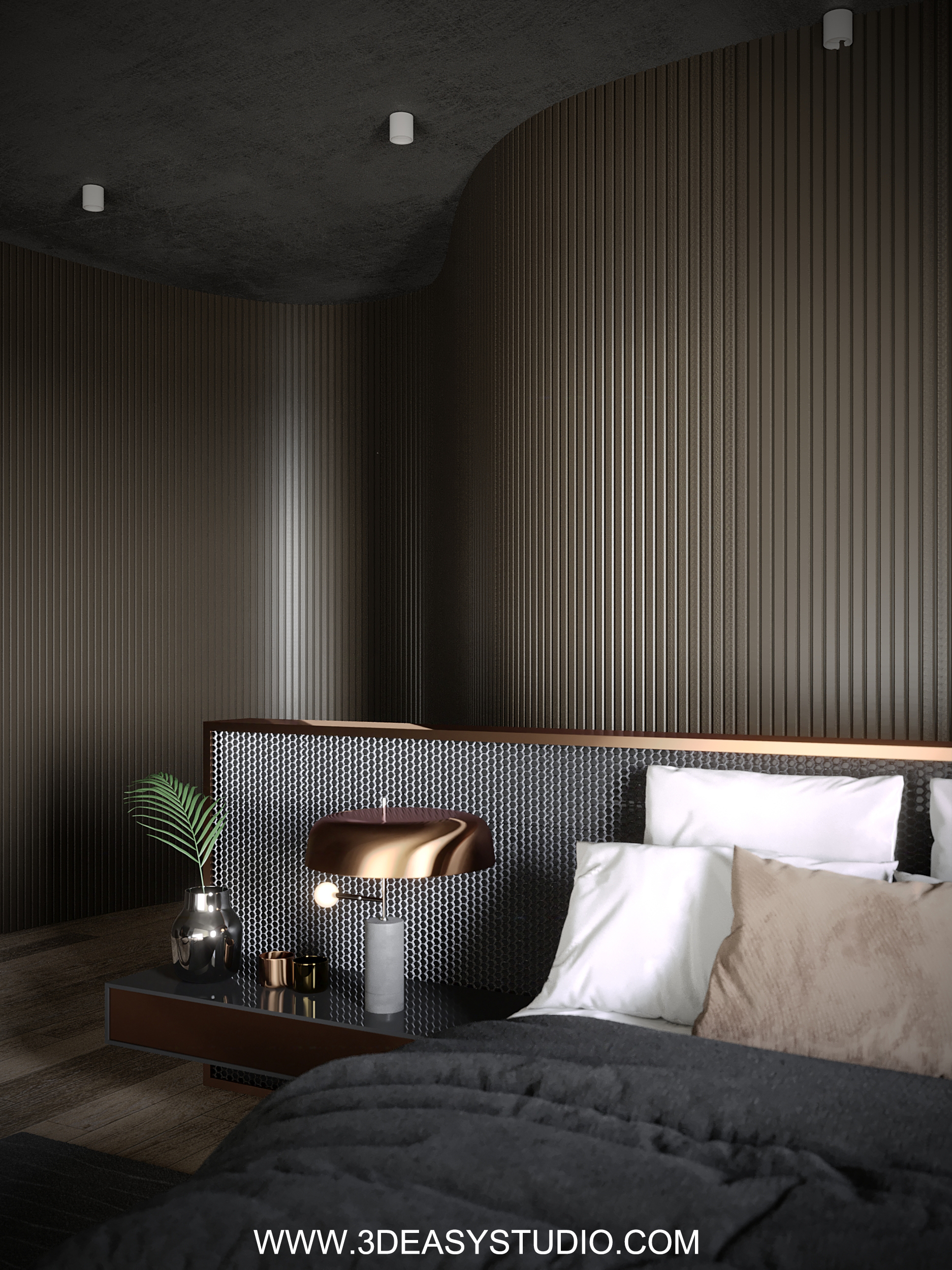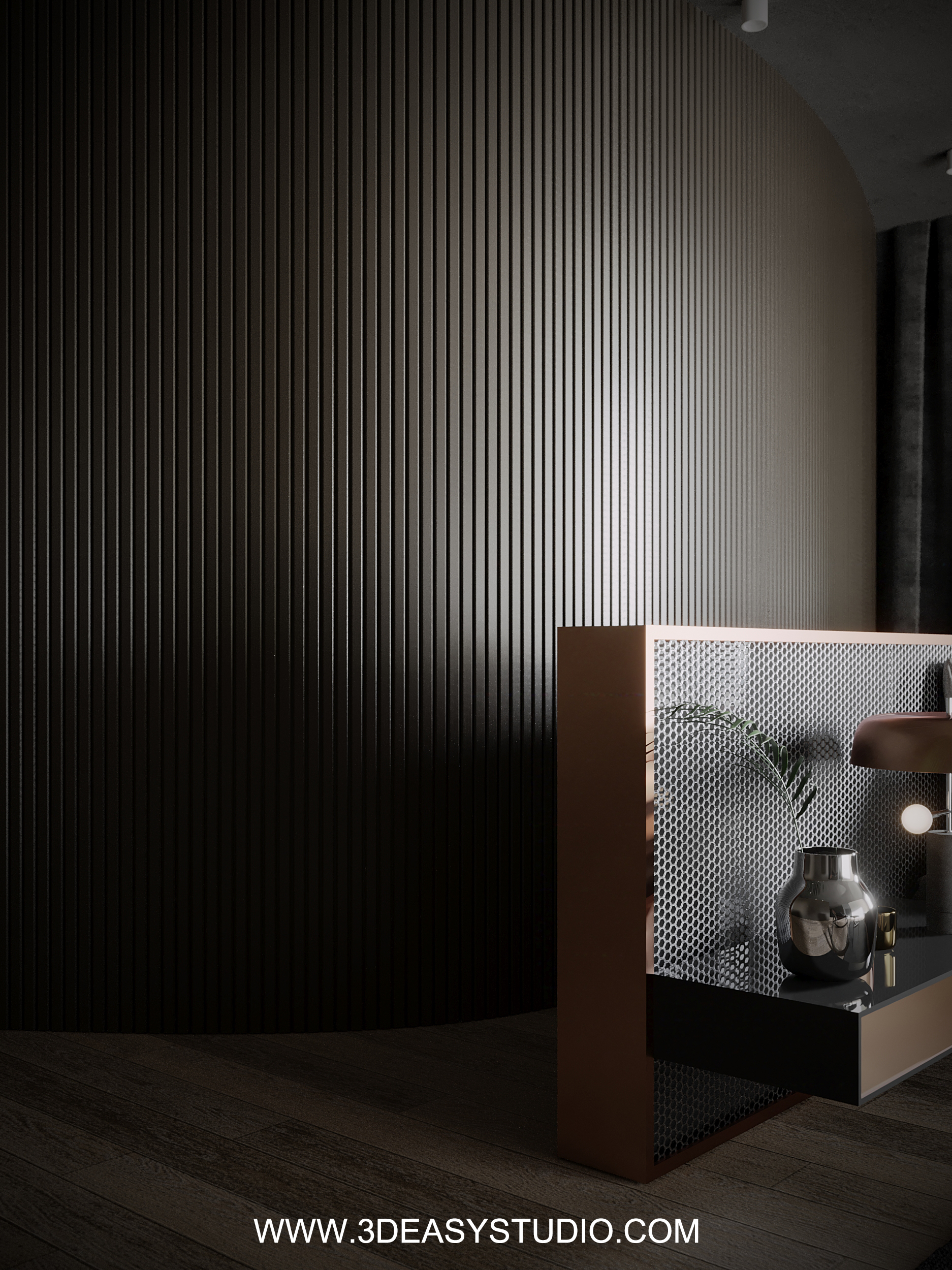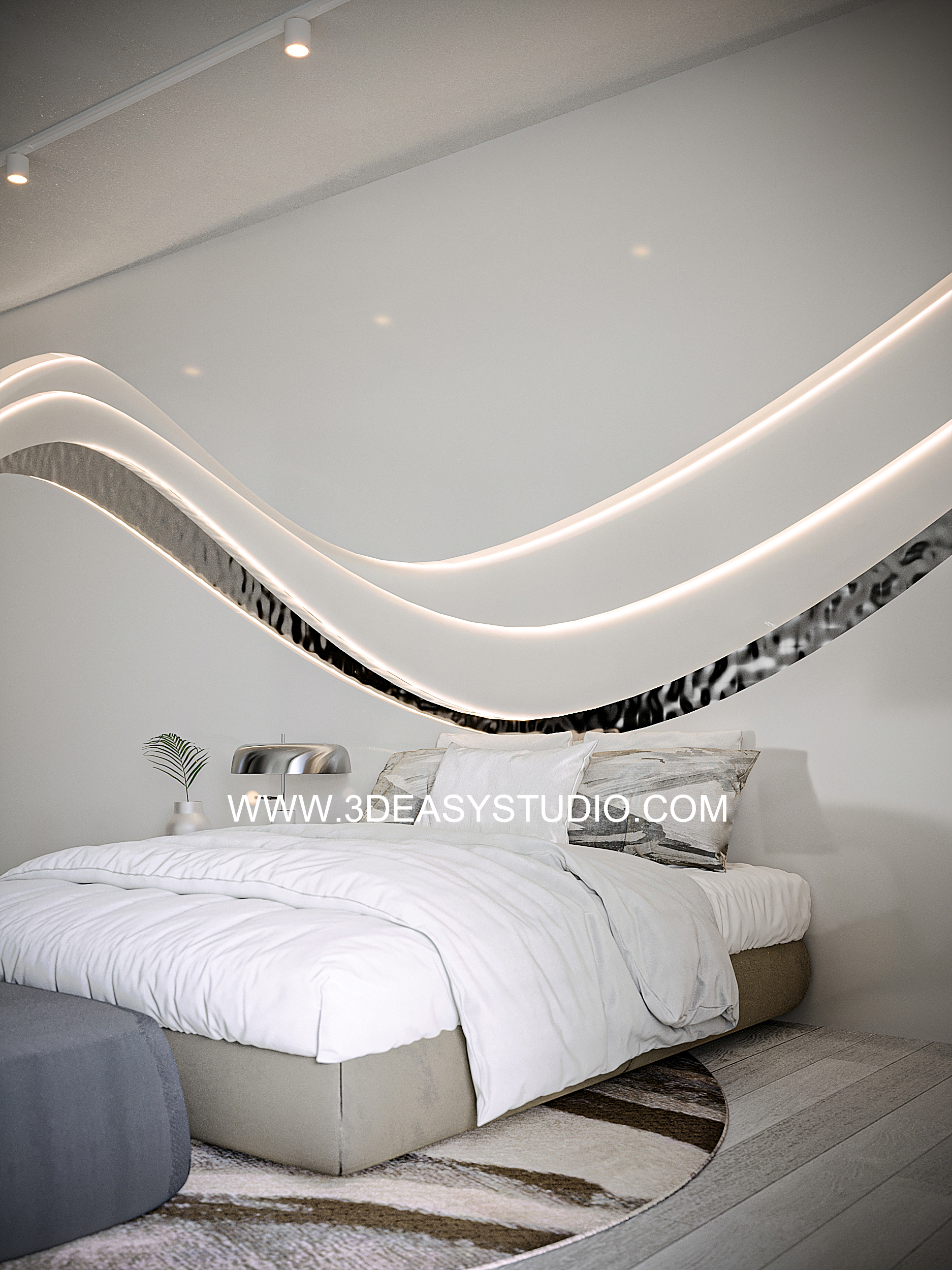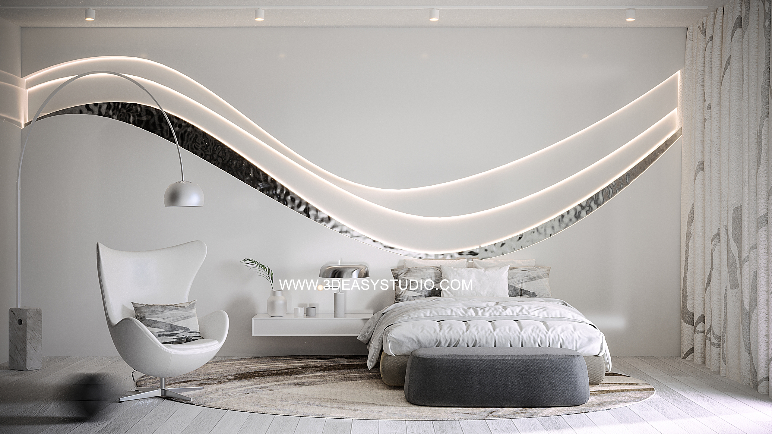 ผนังซ่อนไฟโค้งลวดลายพริ้วไหว สามารถปรับความกว้างยาว และเส้นโค้งได้ตามต้องการ เสร็จแล้วสามารถแยกใส่ Material ระหว่างเส้นแผ่นโค้งได้ มีการแยกเส้นไฟไว้ เลือกใส่สีสัน และ Texture ได้ตามต้องการ