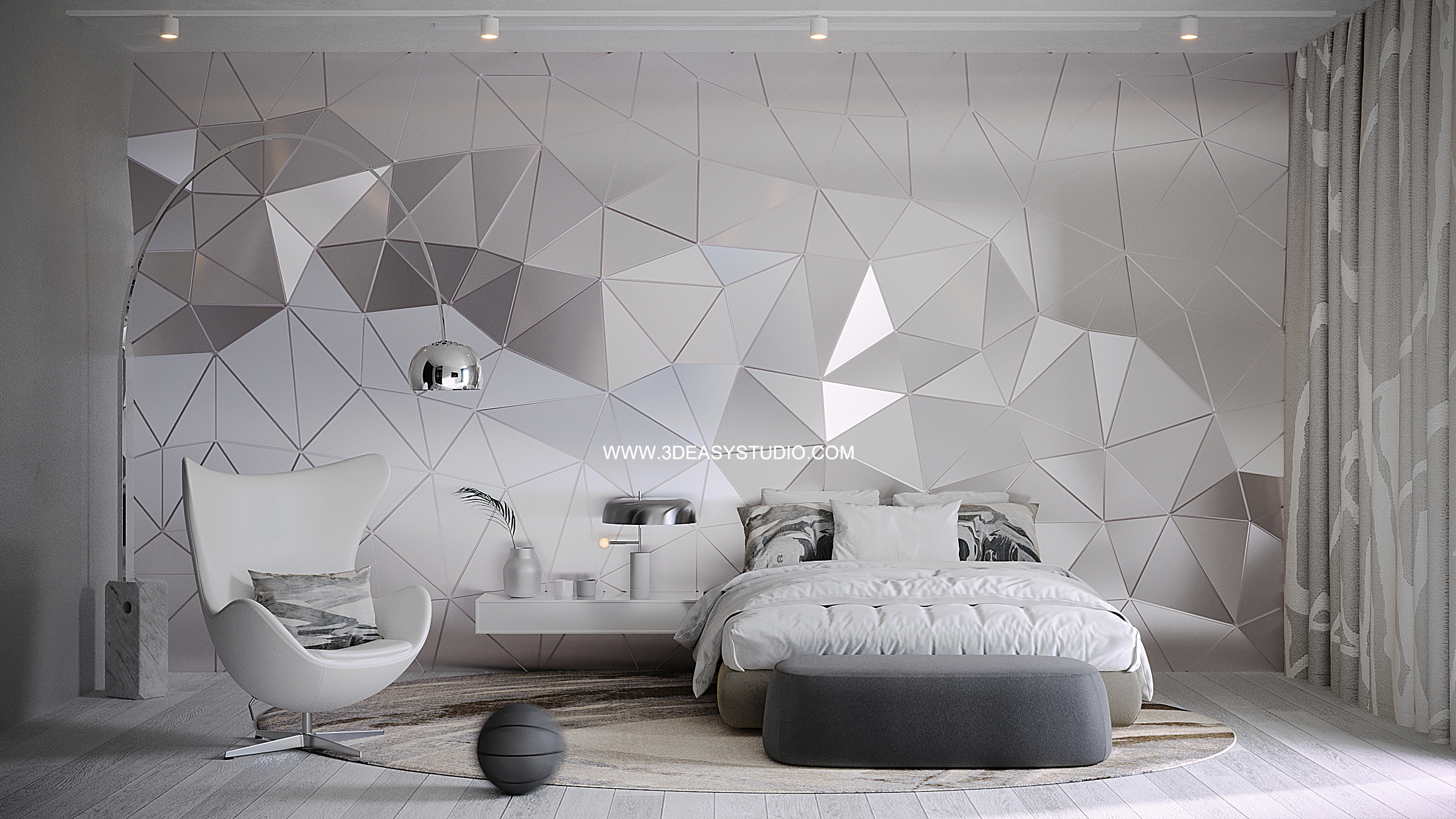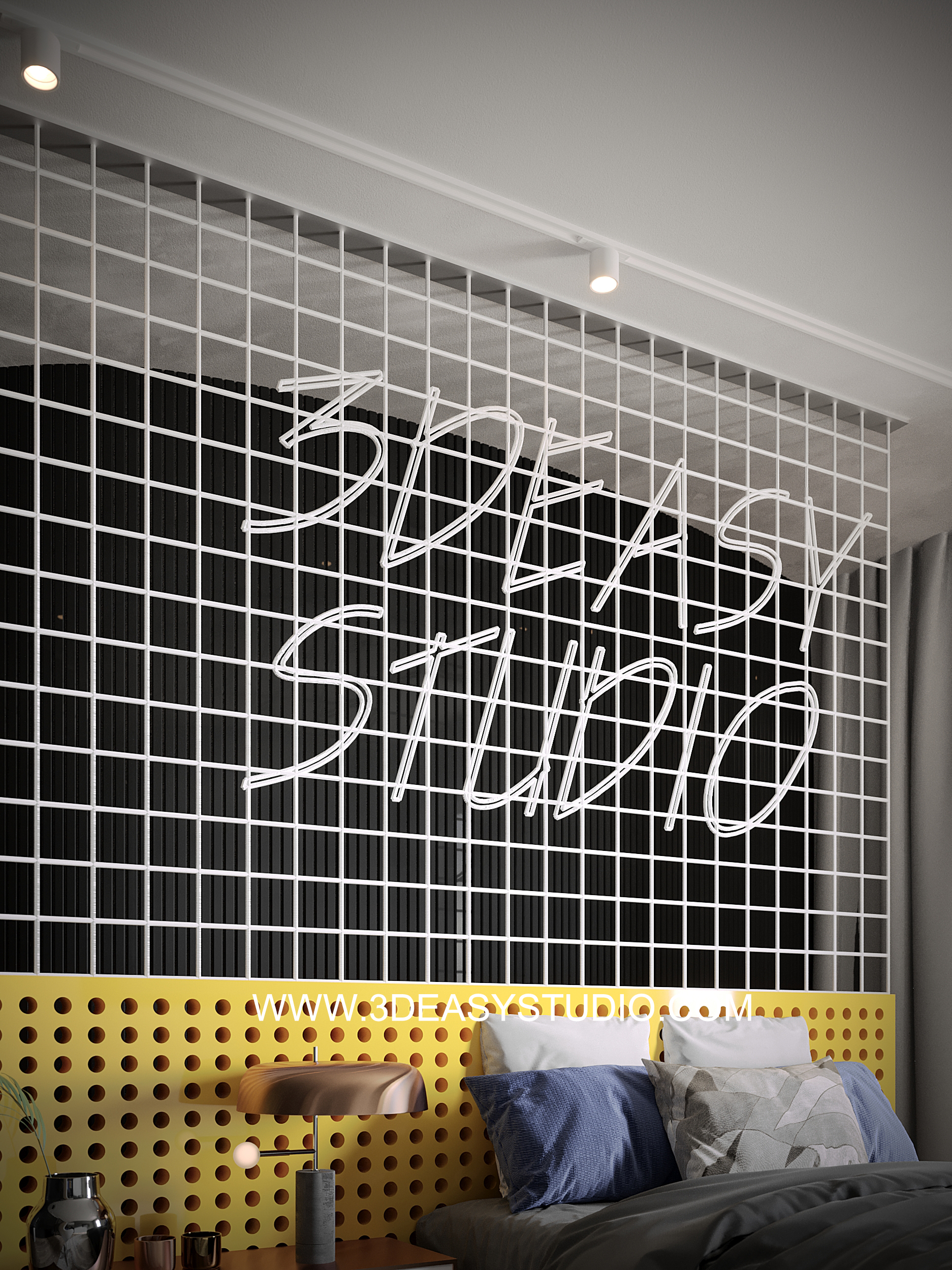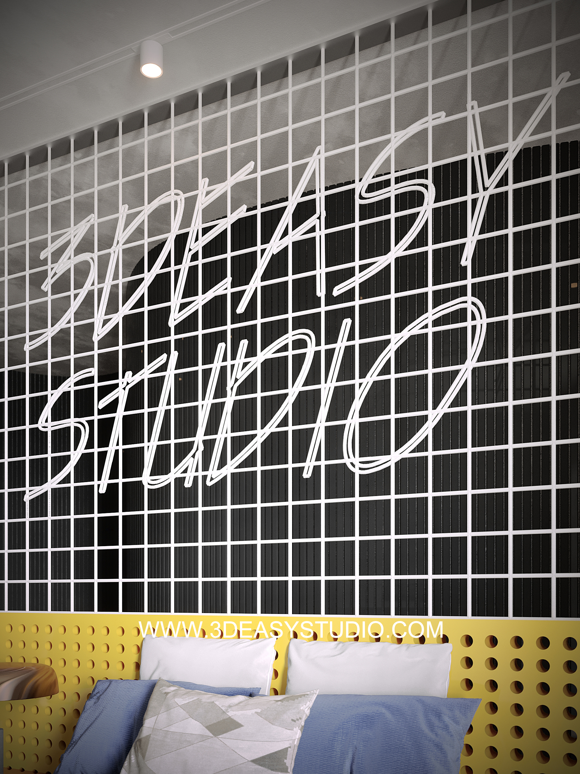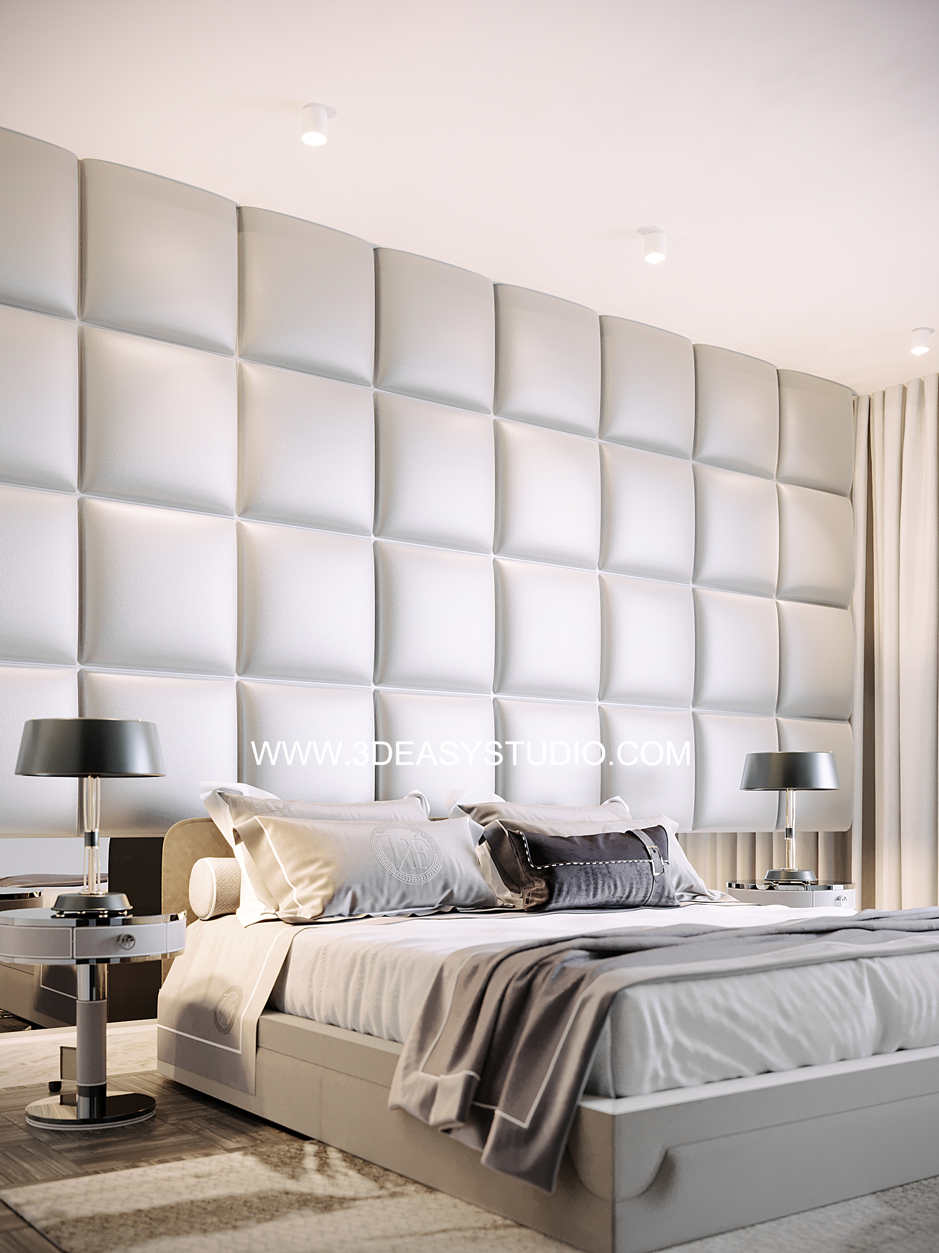 ผนังบุนวมนุ่มๆรูปแบบลายโค้งพริ้วไหว ทั้งแผ่นเป็นชิ้นเดียวกัน ปรับระยะความหนาของเบาะ ปรับรอยดึงเย็บและขนาดความกว้างยาว ความโค้งมนของเบาะได้ ตามต้องการ เสร็จแล้วสามารถใส่ Material สีสัน และ Texture ได้ตามต้องการ