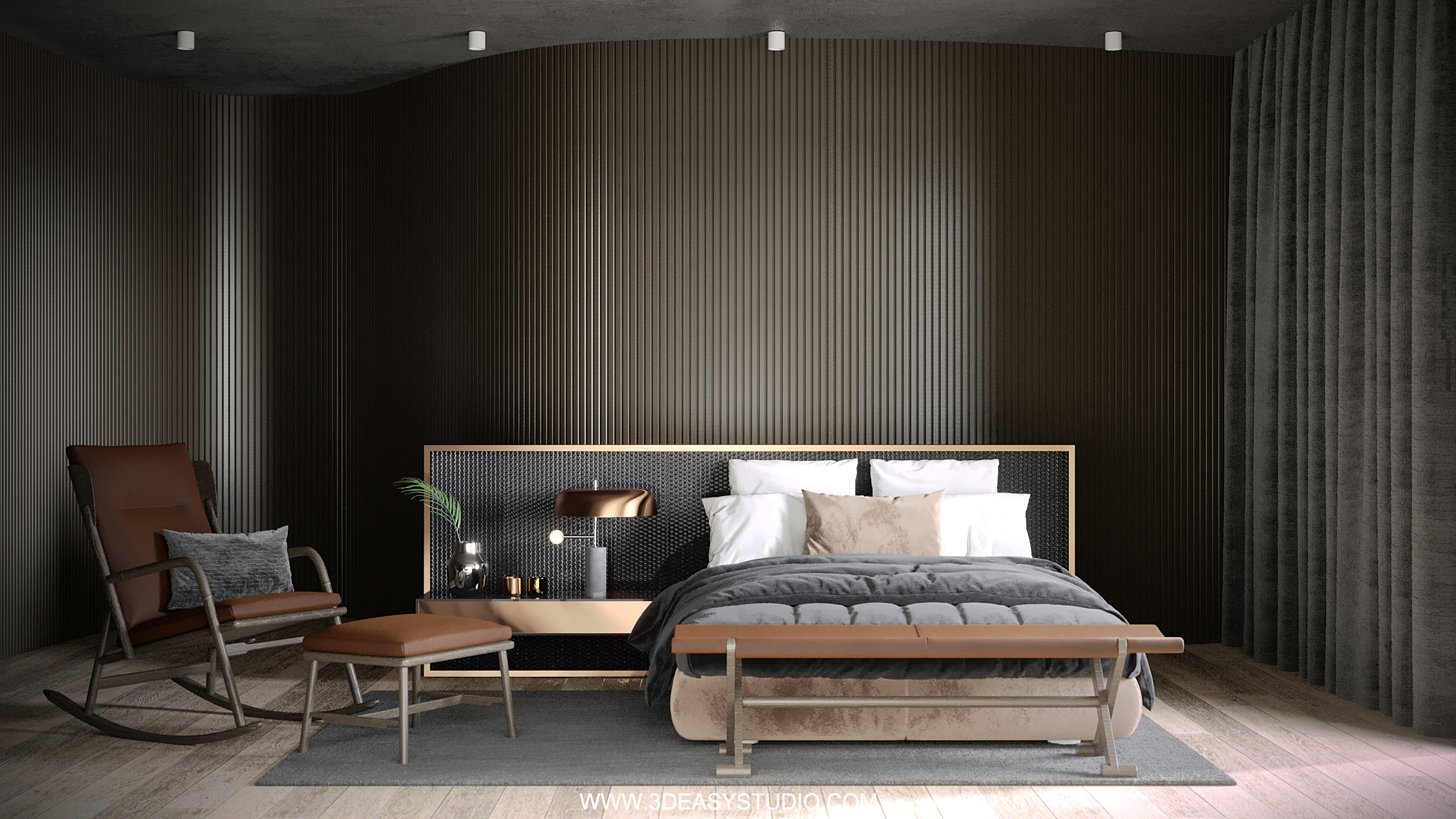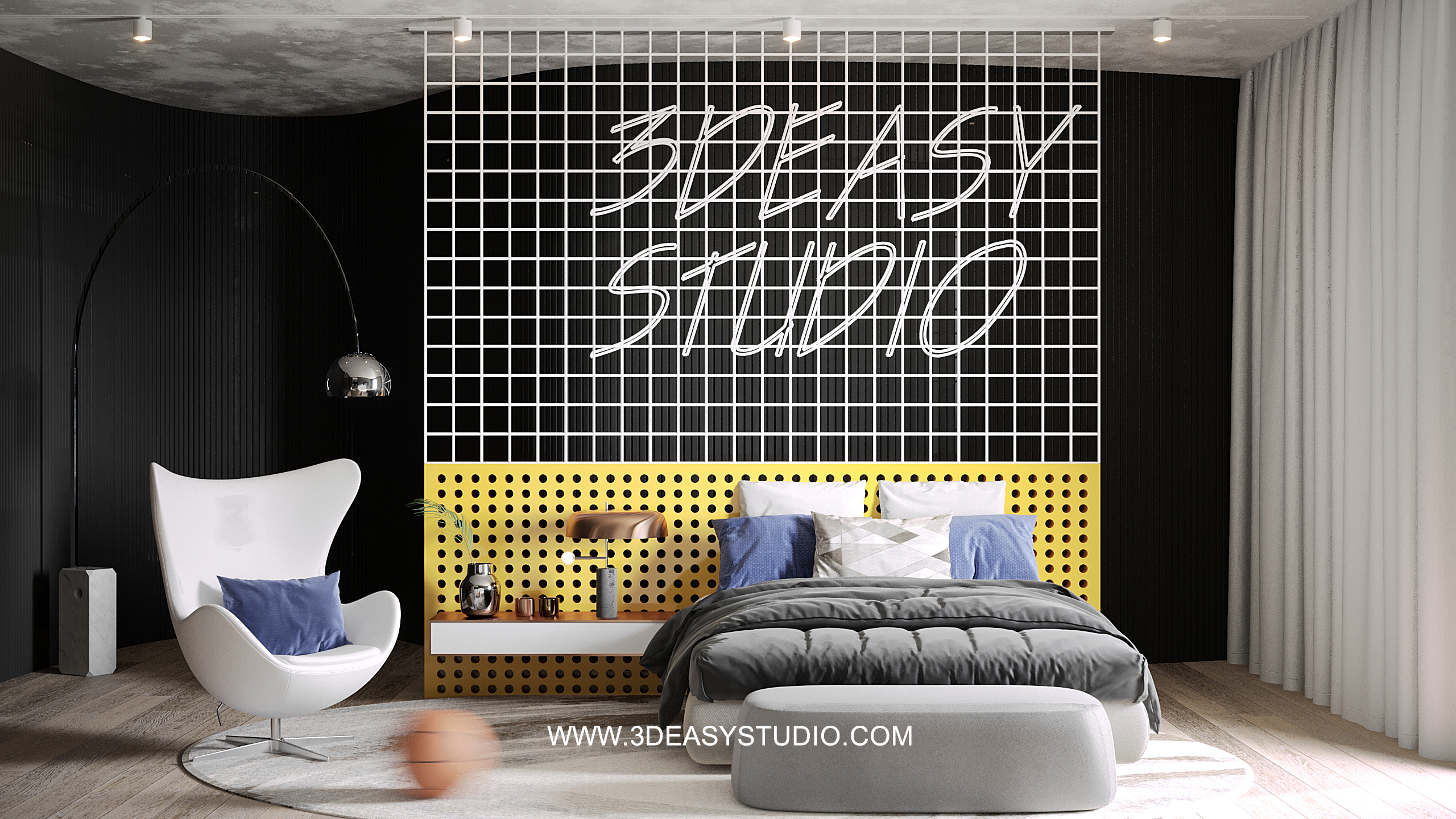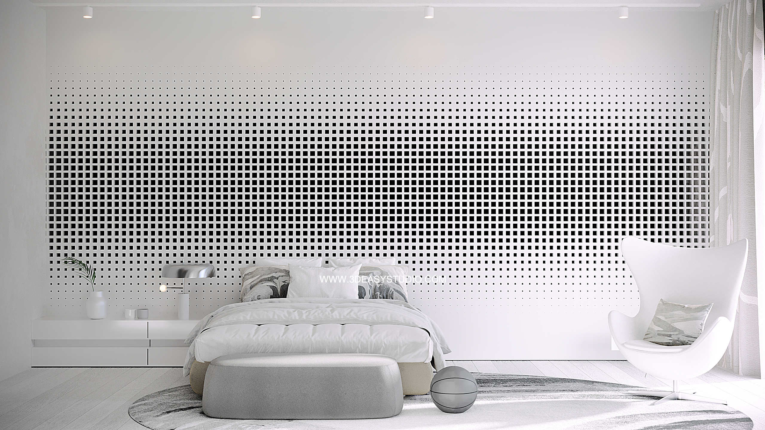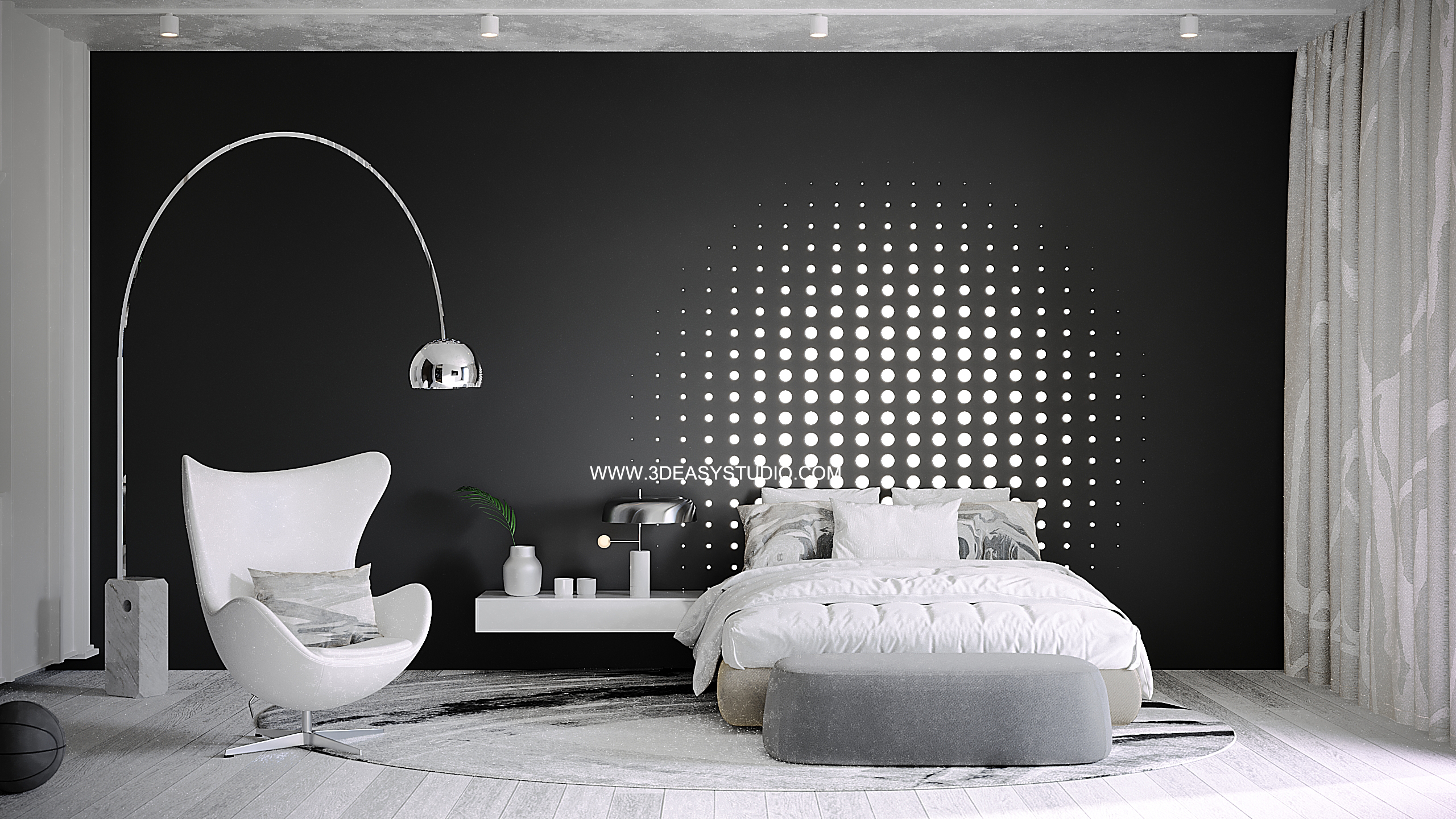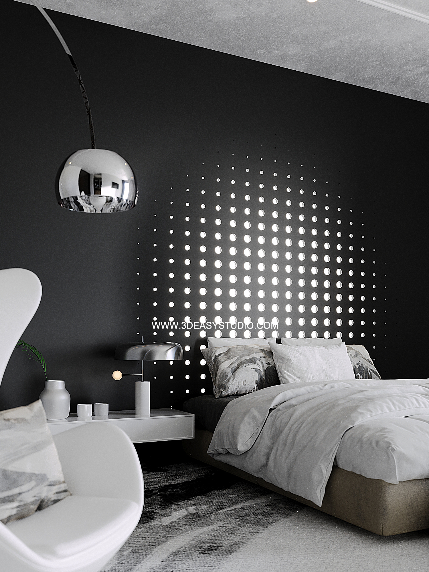 ผนังบุนวมนุ่มๆรูปแบบลายโค้งพริ้วไหว ทั้งแผ่นเป็นชิ้นเดียวกัน ปรับระยะความหนาของเบาะ ปรับรอยดึงเย็บและขนาดความกว้างยาว ความโค้งมนของเบาะได้ ตามต้องการ เสร็จแล้วสามารถใส่ Material สีสัน และ Texture ได้ตามต้องการ