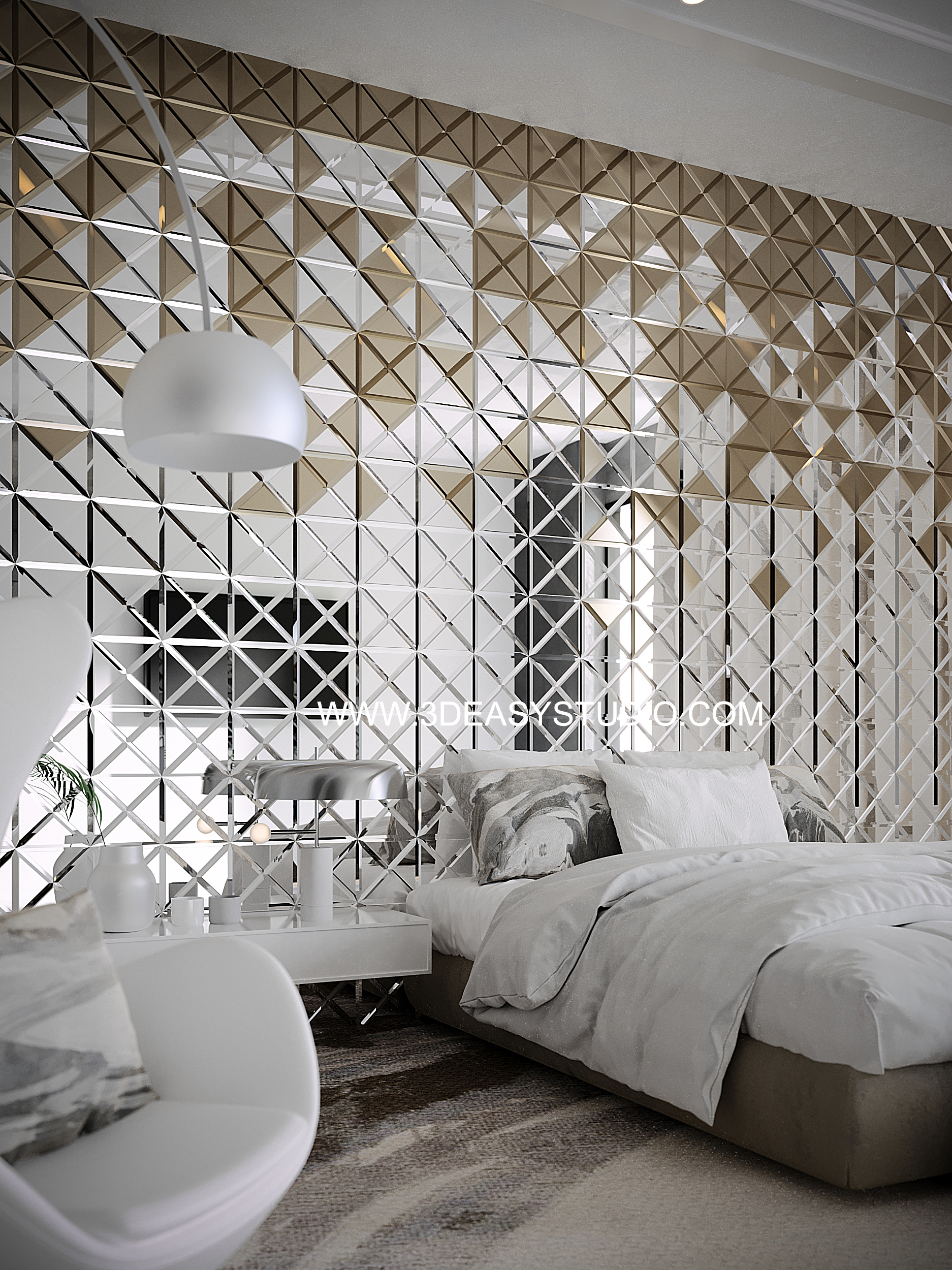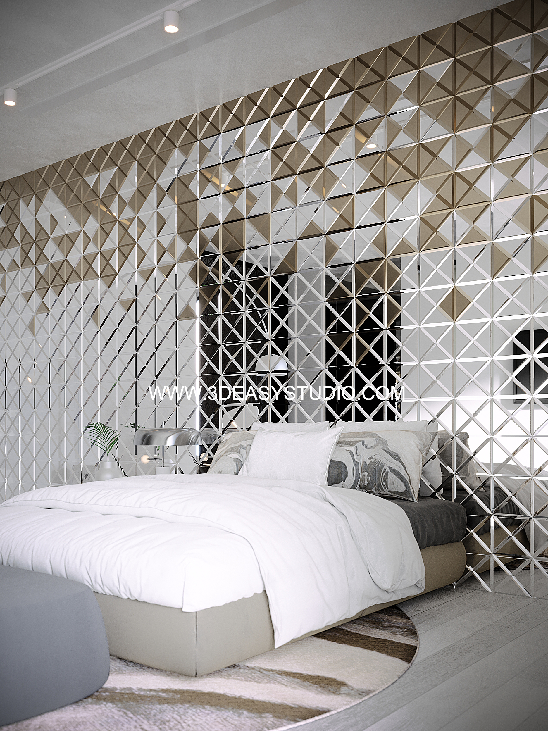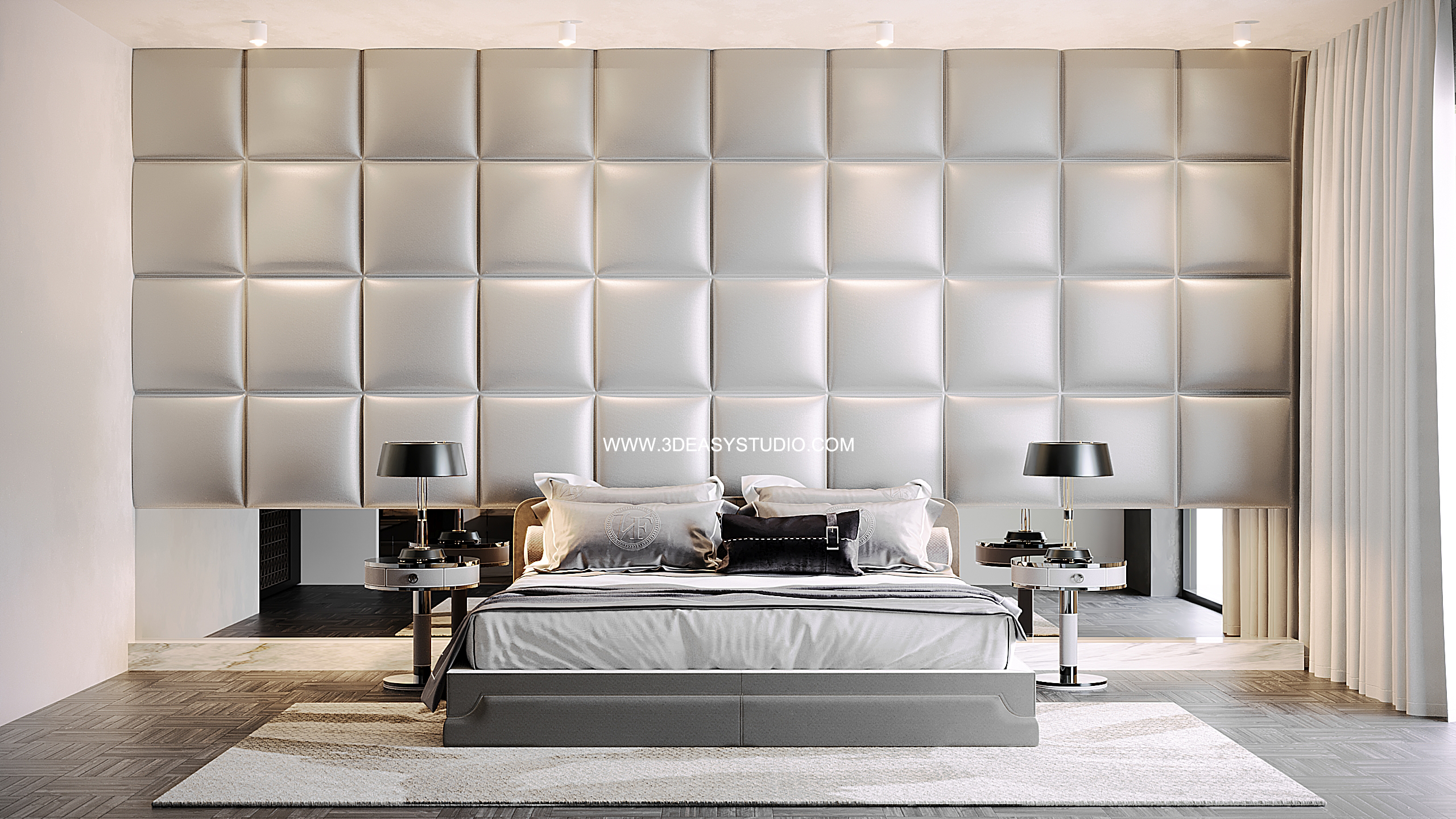 ผนังบุนวมนุ่มๆรูปแบบลายข้าวหลามตัด ทั้งแผ่นเป็นชิ้นเดียวกัน ปรับระยะความหนาของเบาะ ปรับรอยดึงเย็บและขนาดความกว้างยาวของเบาะได้ ตามต้องการ เสร็จแล้วสามารถใส่ Material สีสัน และ Texture ได้ตามต้องการ