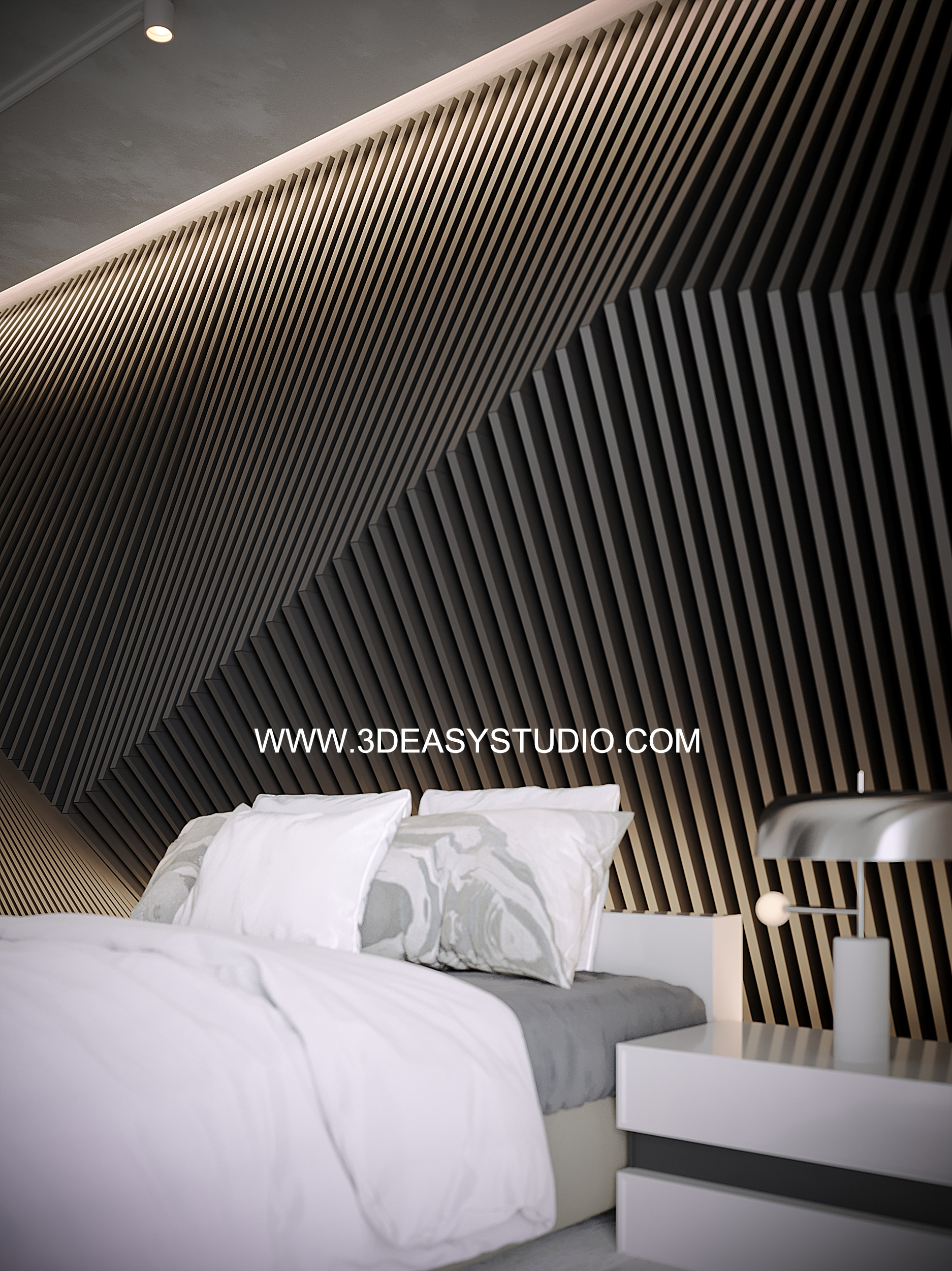 ผนังลายสลับตามแบบเว้นร่องตัว V สามารถปรับความกว้างยาว และขนาดของแผ่นได้ตามต้องการ เสร็จแล้วสามารถเลือกใส่ Material สีสัน และ Texture ได้ตามต้องการ